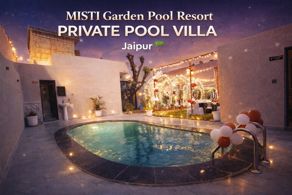 You won’t forget your time in this romantic, memorable place. Enjoy a private pool stay at MISTI Garden Pool Resort, Jaipur. Perfect for couples, friends & parties. Relax in your own pool, celebrate special moments, and create unforgettable memories. Spacious outdoor area, beautiful setup, and a peaceful vibe near the city make it ideal for day/night stays, birthdays & get-togethers.