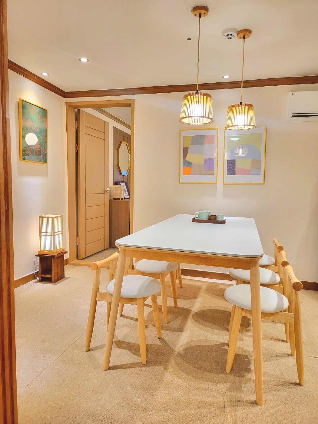 숙소설명 숙소의 이름처럼 잔잔히 흐르는 강뷰가 보이는 숙소입니다. 실내는 24평정도의 아늑하고 여유로운 공간을 단독으로 쓸 수 있어요. 8명까지 둘러앉아 업무회의와 파티도 가능한 거실의 대형우드슬랩, 카페처럼 꾸며진 코지한 베란다공간, 넓은안방 침대에 누워 볼수 있는 대형 TV,마주보고 이야기할수 있는 푹신한 소파존이 있어요. 곳곳에 호스트가 직접 만든 조명,우드선반,테이블,가구는 이 집의 자랑입니다. 숙소바로앞에 금호강 산책로와 낚시터.자전거길이 멋지니 추천드립니다.