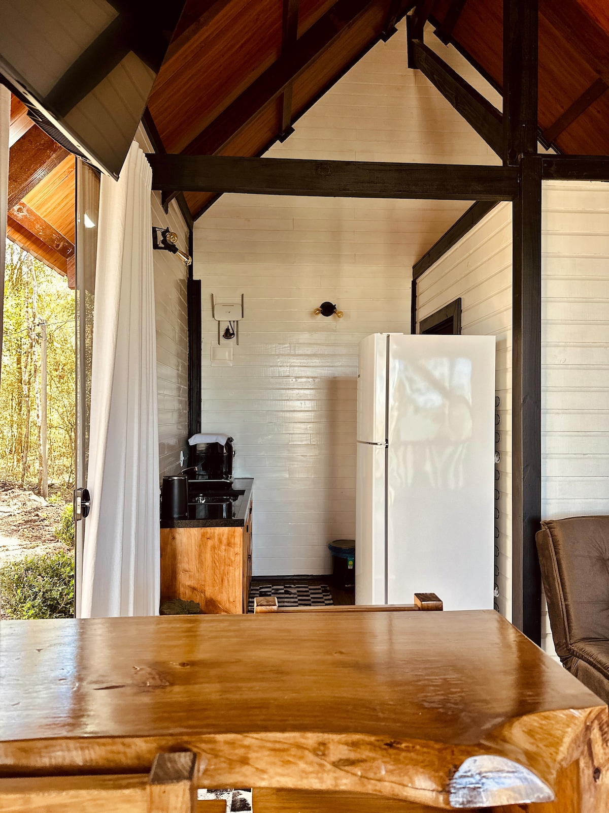 Ovaj jedinstveni smještaj ima svoj stil. Blackhuts ima tri divne brvnare, jednu različite od druge i svaki sa svojim šarmom. Udaljeni su dvanaest minuta od centra Santa Marija do Hervala, imaju samo posljednjih 6 minuta boravka na zemlji, nalaze se na povučenom mjestu upravo kako bi pružili više mira i udobnosti, ali postoji pijaca osam minuta od koliba. Imamo u našem regionu otimos restorane, kaskade, vodopade, rijeke i još mnogo toga, molim vas da vas pozovem.
