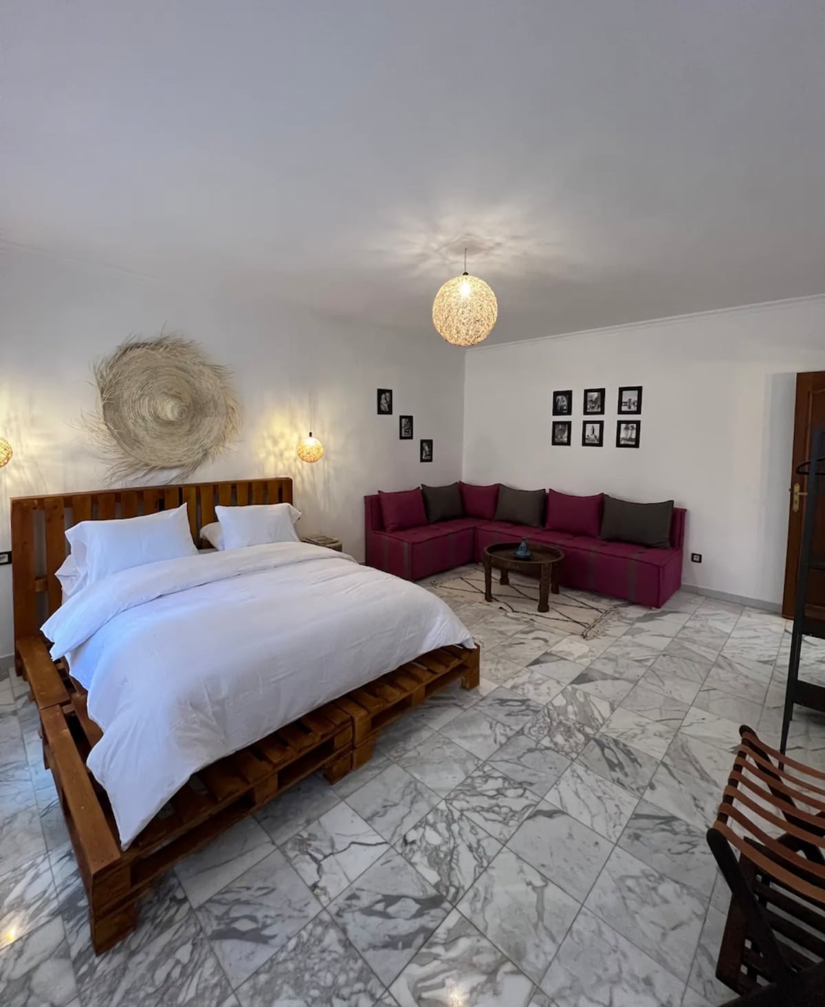 Dobro došli u svoju privatnu oazu u srcu Marakeša, tropskog studija inspirisanog oko čistog i umirujućeg koncepta. Ovdje vas svaki detalj poziva da se opustite, između prirode, svjetla i moderne udobnosti • mali privatni otvoreni bazen za trenutak opuštanja • Osvježavajući spoljni tuš, prirodna atmosfera • Tropska terasa idealna za opuštanje ili dijeljenje obroka • Pažljivo osmišljeni ukrasi sa prirodnim tonovima i materijalima.
