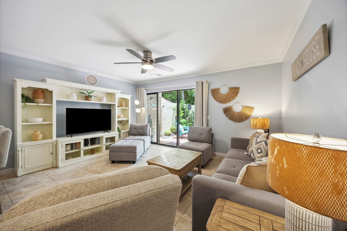 Just steps from beach, shops, tennis, dining & park - Discover your escape at our beautifully renovated 3BR, 3.5bath villa. Enjoy private bathrooms for each bedroom, fully equipped kitchen, tennis next door at Van Der Meer, and a private pool. Stroll your way to Low Country Celebration Park with children’s museum, playground and pavilion. Continue to shopping and dining at Coligny Plaza. Then, gain access to the ocean at award-winning Coligny Beach. Explore the best of HHI at your doorstep!