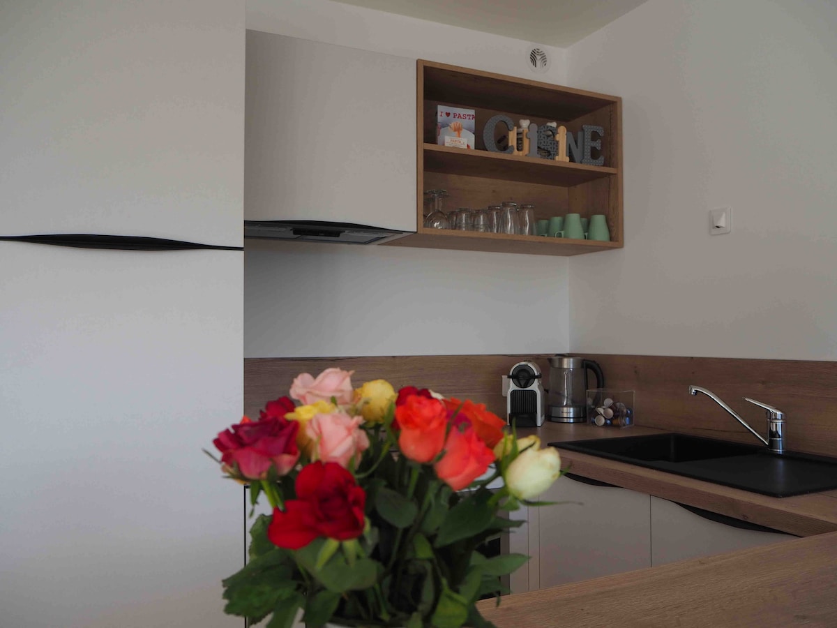 Udoban 🏔️ studio sa baštom u srcu južnih Alpa! Idealan za 4 osobe, ovaj potpuno opremljen studio u apartmanu s dodatnim uslugama nudi vam udobnost i praktičnost: modernu kuhinju, TV, Wi-Fi, kutiju za skijanje, opremu za planinarenje i djecu. 100 m od prodavnica i vodene površine, u blizini mitskih prolaza i Italije. Besplatan prevoz. Kućni ljubimci su dobrodošli (€). Posteljina (€). Najmanje 2 noćenja od septembra do maja i najmanje 7 noćenja od juna do avgusta. Odlično za boravak u prirodi i opuštanje!