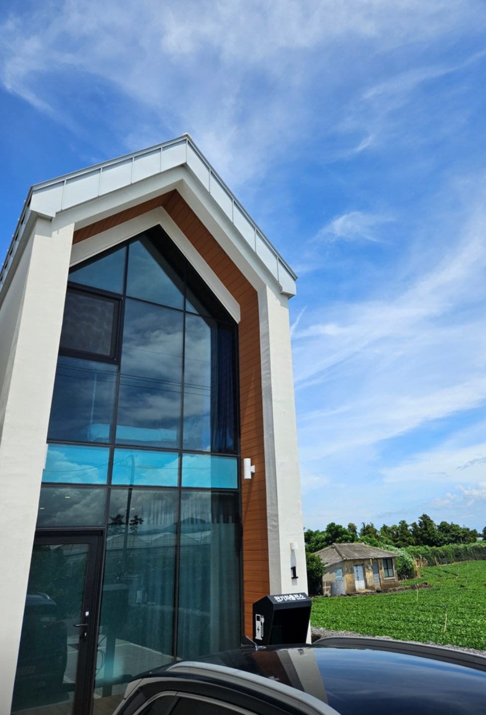 Ovo je samostalni smještaj koji se nalazi u šumi Songdang Black Moru u Jejuu. Odlično za samostalnu samoću ili netaknutu izolaciju sa ljubavnikom ili bliskim prijateljem. Spoljašnji sadržaji u kući se dobro podudaraju s prirodom, ali vrlo moderni. Obje strane imaju predivan pogled na prirodu kroz staklo. Tu je takođe šumska staza izvan kuće koja vodi do dubokog šumskog puta. Sadržaji kao što su razni kuhinjski aparati, frižider, mašina za veš, roštilj na otvorenom i internet su vjerni. Međutim, ne obezbjeđujemo TV. Iznad svega, možete koristiti tri fudbalska terena. Gostima nudimo i popust od 20% na meni pre kafića Interforest u svakom trenutku. Za referencu, kuća se nalazi na ulazu u šumu povezanu sa putem, tako da to nije slika kolibe u dubokim planinama.