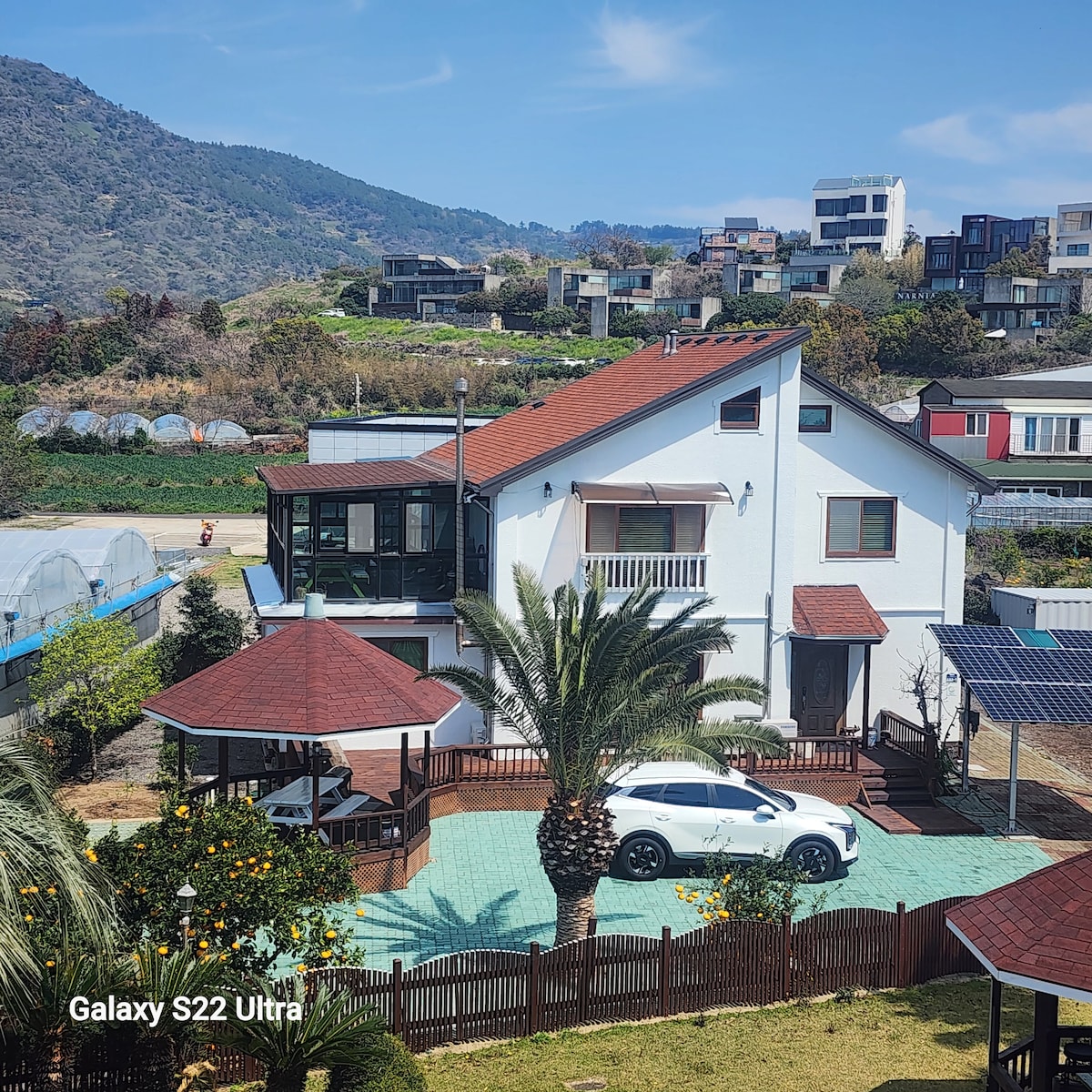 U najtoplijem i najtišem selu u Seogwipu, postoji vila u kojoj ne samo odrasli, već i djeca i starije osobe. Imamo đakuzi, dječje igralište, staklenik, zonu za piknik itd. To je vila puna lijepih zona za fotografisanje. Podovi su odvojeni i imaju pojedinačne kuhinje i dnevne boravke, tako da su savršeni za putovanje sa velikim porodicama ili parovima sa djecom. Obezbijeđeni predmeti za bebe: sterilizator sa ultraljubičastim zračenjem, deterdžent za boce, kuvalo za vodu, stolica za hranjenje,kada, krevetac za bebe i daska za WC šolju
