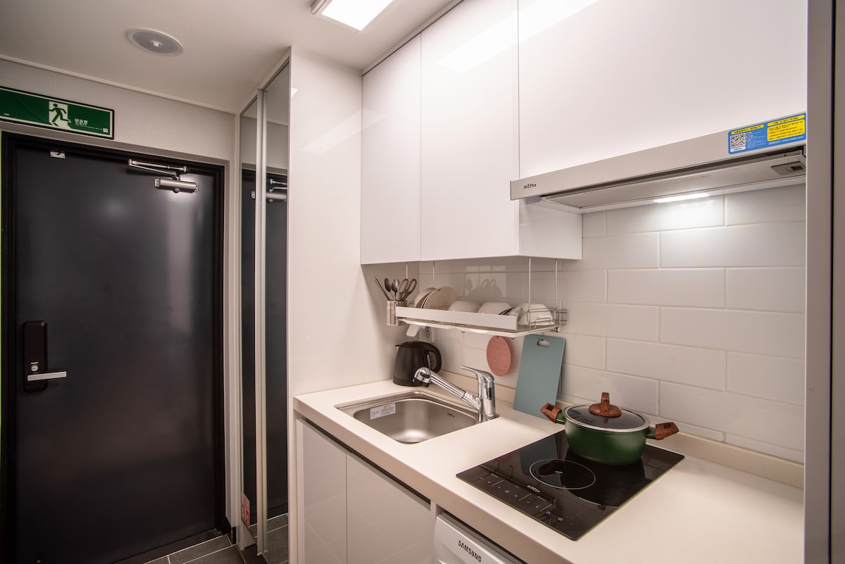 Dizajniran za jednokratnu upotrebu, savršen za putnike koji putuju sami. Može da primi dve osobe. SADRŽAJI * Čista nova soba * Vrhunski namještaj sa Ace krevetom * Sadržaji sobe: TV, Netflix (lični nalog), Wi-Fi, klima uređaj, podna grejalica, topla voda, mašina za pranje veša, bežični usisivač, Mokri * Krevet i kupatilo : posteljina, peškir, fen za kosu, šampon/regenerator/gel za tuširanje, sapun za ruke * Kuhinja : Mikrotalasna rerna, frižider, indukcija sa 2 automobila, lonac/tava, makaze, posuđe i pribor za jelo