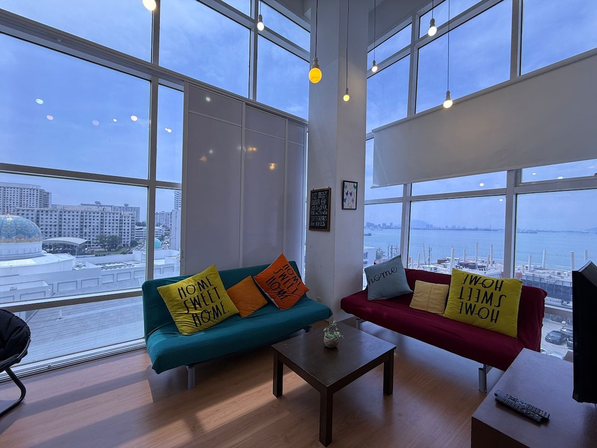 Urban Suites by XW Home Penang • 850 kvadratnih metara, vetrovita jedinica na visokom spratu • Pogled na more i grad • Obezbijedite karaoke KTV i TV sanduče, pogodne za porodicu i prijatelje • Novouređen i namješten • Potpuno klimatizovano • 2 privatna parkinga • Restorani, kafići, pabovi, Starbucks, Coffee Bean, Family Mart, 7-Eleven u blizini • Strateška lokacija, praktičan prevoz 5 minuta do prvog mosta u Penangu. • 10 do 15 minuta vožnje (manje od 5 km) do pristaništa za žvakanje, ulične umetnosti i starog grada pod zaštitom Uneska.