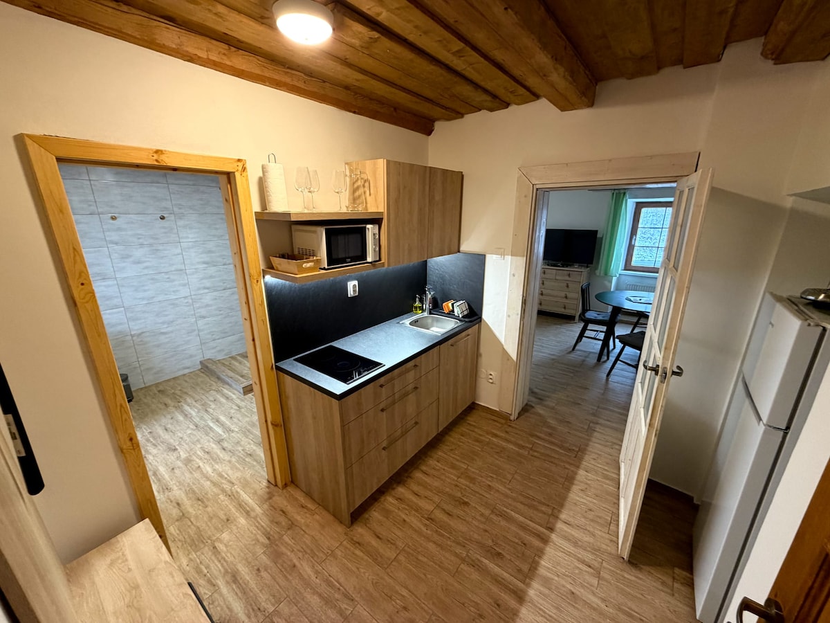 Naš stan se nalazi u srcu planina Jeseníky, u blizini baze brzih staza. Okružen je livadama i šumama, u potpunoj privatnosti. U blizini se nalaze kamenolomi i jezerca za kupanje, ruševine dvorca i prelijepe šetnje od vrata. Peške, biciklom, sa kolicima. Spa centar Jeseník nalazi se preko brda, ljubitelji kulture će cijeniti Tančínu u Račím údolí ili dvorac u Javorníku. Volite li dobru kafu i nešto dobro? U kafiću Elenor u Granitu, oni će se pobrinuti za vas.