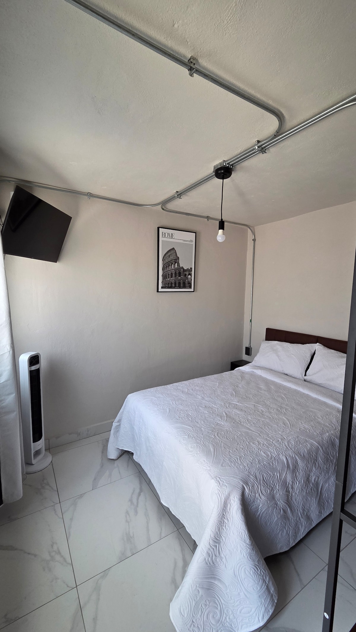 Butik apartman u centru Agvaskalijentesa, u neposrednoj blizini Madera i hrama San Antonija. Uživajte u udobnom i privatnom boravku sa spavaćom sobom, sofom na razvlačenje, potpuno opremljenom kuhinjom, brzim Wi-Fi mrežom i pametnom televizorom. Idealna krovna terasa za opuštanje u sumrak uz pogled na grad. Mogućnost samouslužnog ulaska 0–24 i mašina za pranje i sušenje veša. Savršeno za parove ili poslovne putnike koji traže lokaciju, dizajn i mir. Može da primi do 4 gosta, uz mogućnost prilagođavanja prostora za 6 osoba na prethodni zahtev.
