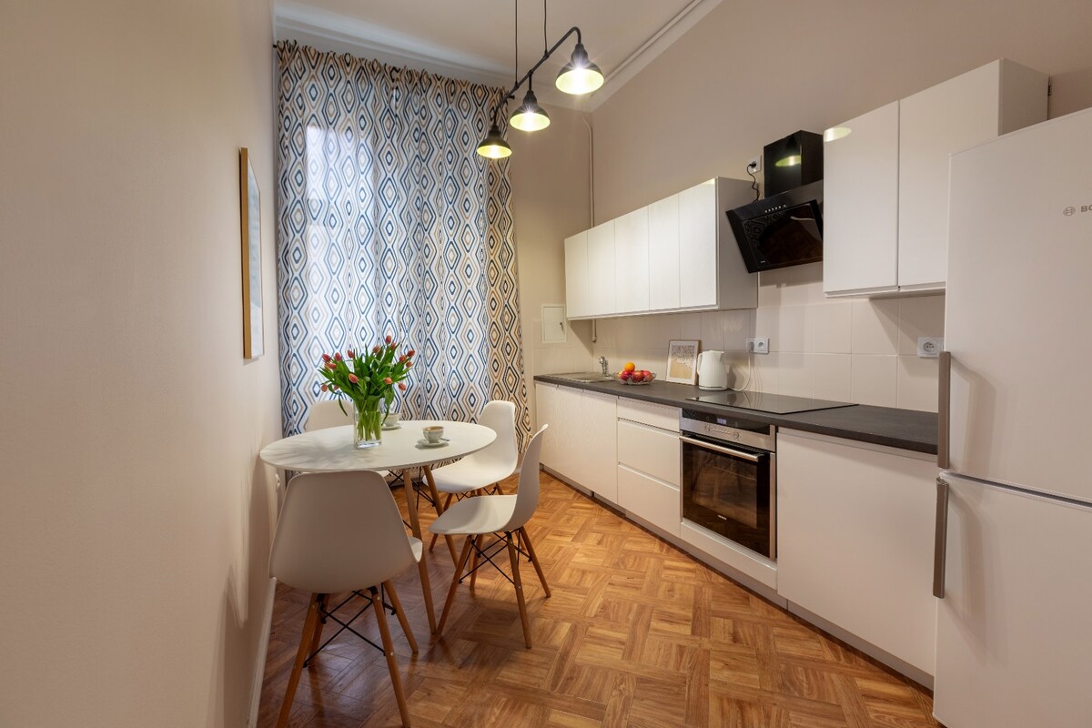 Ciepłe światło, cegła na ścianie i widok na Katedrę prosto z poddasza - ten apartament to urban dream dla dwóch osób. Industrialny styl spotyka tu przytulność: są surowe akcenty, metalowe detale i drewniane wykończenia, ale wszystko otulone miękkim światłem i ciepłą atmosferą. Centralnym punktem jest stolik barowy - idealny na poranną kawę, wieczorne wino albo spontaniczne rozmowy do nocy. Jeśli marzysz o nietuzinkowym miejscu z charakterem, w którym widać i czuć miasto - to jesteś w domu. :)