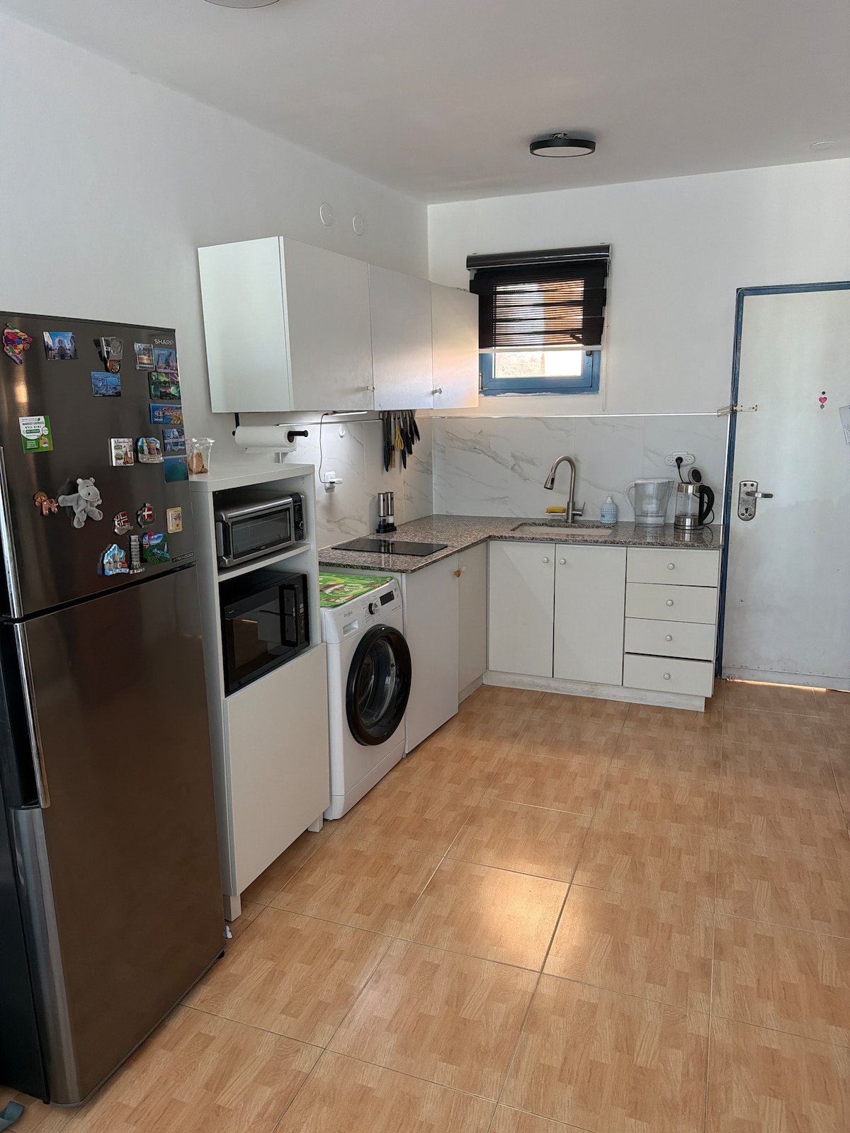 Novi i udoban smještaj za odmor u Kibucu Beit Alfa. Prostrana stambena jedinica (35 m2) sa dnevnim boravkom, potpuno opremljenom čajnom kuhinjom i zasebnom spavaćom sobom. Ogroman balkon sa otvorenim pogledom na Gilboa i Emek Hama 'ayanot. Jedinica se nalazi iznad kuće sa zasebnim ulazom i spoljnim stepenicama, tiha i udobna. Savršeno za odmor, putovanja i doživljaje u kibucu. Kibuc ima mini pijacu, trpezariju, kolica za kafu, klimatizovane igre Bazen s kibucom (uz doplatu) - sezona kupanja između sedmica u Sukotu. U kratkoj vožnji možete posjetiti Sachna, Hama 'ayanot Park, Ma' ayan Harod, Chuga Gardens, Gan Guru, Mishkan of Art i još mnogo toga.