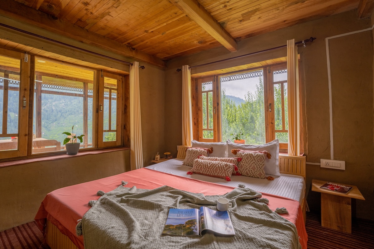 U kompaniji Tirthan Ecostay nastojimo da budemo apsolutno pravedni prema svom imenu, gdje se održivost susreće s pristupačnošću. Ovdje imamo 4 odvojene sobe, ukusno uređene i održavane kako bismo pružili maksimalnu udobnost i zadovoljstvo tokom boravka . Sa 4 sobe ,sve imaju smještaj s bračnim krevetom, a po potrebi će biti dodijeljena odvojena posteljina.