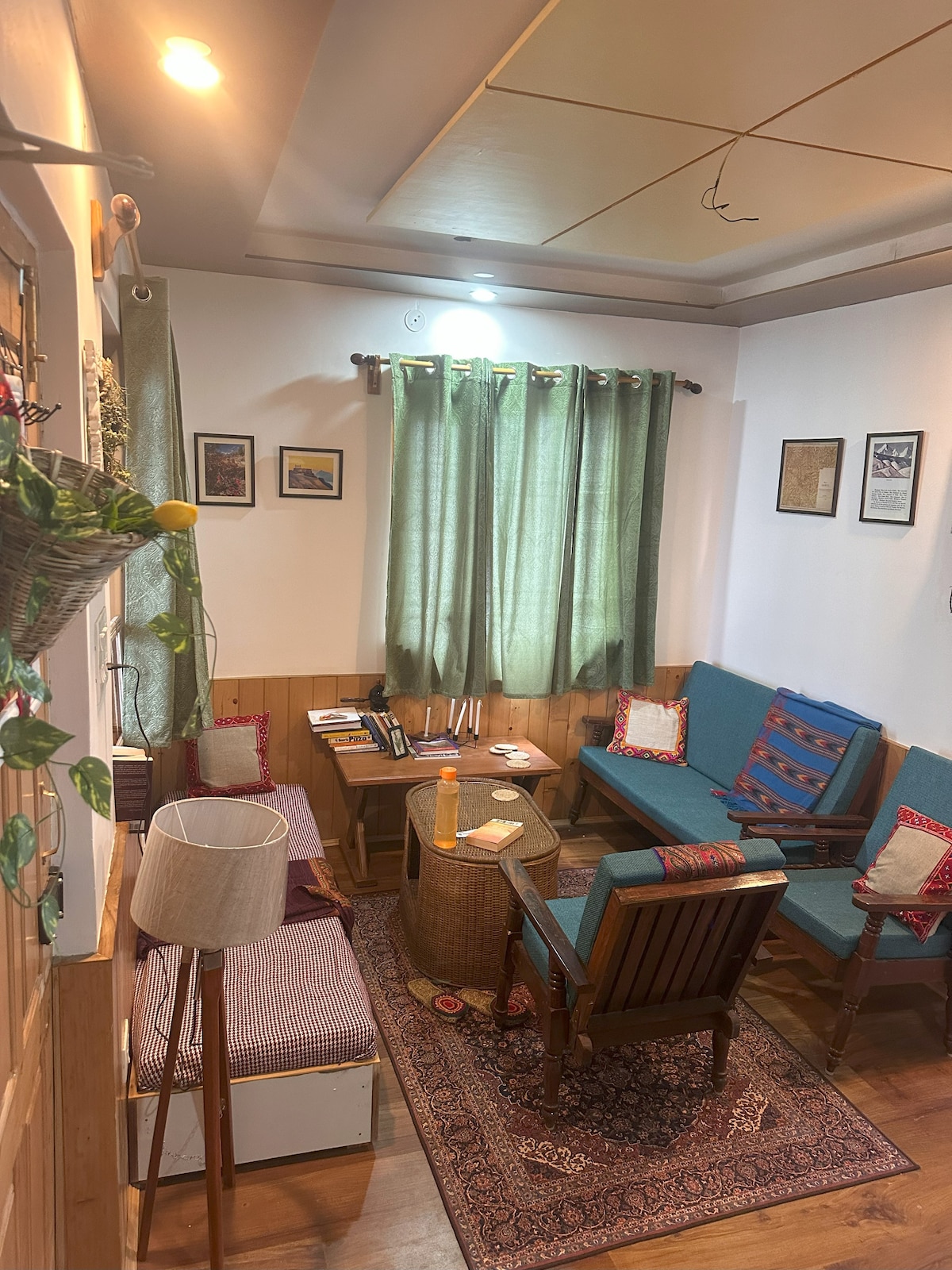 Kuća na vrhu brda koja se nalazi u voćnjacima jabuka sa 2 namenske sobe za goste u kojima je jedna soba povezana sa čajnom kuhinjom i higijenskim kupatilima i jednom sobom je spavaća soba dobre veličine. Pamćenje pogleda na planine, mirne lokacije, kravljeg mleka i mirnog okruženja je nešto što je naša domena. Naša kuća je opremljena svim osnovnim sadržajima i najprikladnija za one koji traže mir na Himalajima, a posebno za ljubitelje knjiga, ljubitelje meditacije i ptice.