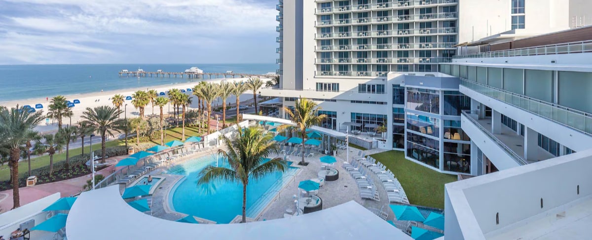Odlična lokacija!!! Na prolazu Klirvoter, bazenu na vodi, bar pored bazena i restoran. Fitnes centar, WAVERUNNER iznajmljivanje, nekoliko restorana u blizini. Najbolji zalasci sunca na plaži Klirvoter. Ovo je dobro opremljena soba s bračnim krevetom i djelimičnim pogledom na Meksički zaliv i naš bazen. Ima malu čajnu kuhinju sa mini frižiderom i mikrotalasnom rernom, sudoperom i nekim porcelanom. Sto u trpezariji za dvoje. Parking je dodatnih 25 USD po noćenju plus porez.