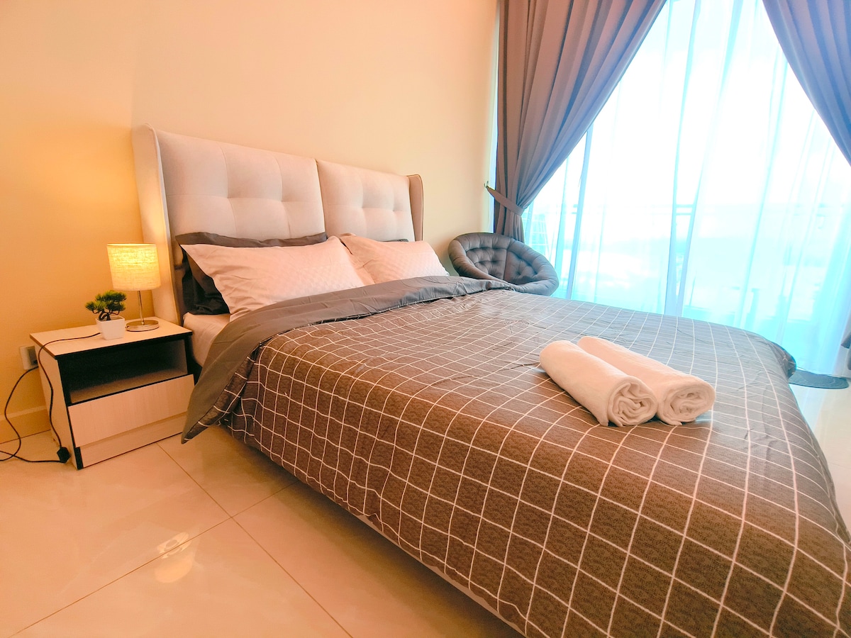Ovaj jedinstveni stan u zalivu R&F Princess ima svoj stil. Nalazi se pored Singapura - Johor Bahru Custom. Postoji most za pješake koji povezuju centar grada Johor i prilagođeni Singapurom. Vrlo pogodno za sve koji posjećuju Singapur i Maleziju. Stan je opremljen bazenom, teretanom i stolom za ping pong. *Prilikom rezervisanja navedite tačan broj gostiju kako bismo mogli da vam pripremimo najbolji boravak. Možda će vam biti dodijeljen drugi stan u R&F sa pogledom na more