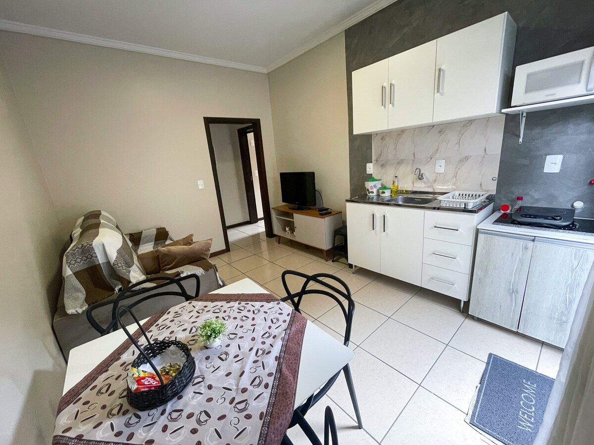 Okružni studio novi stan (visok sprat) potpuno opremljen za dvije osobe u blizini centra Joinville/SC. Smješteni u mirnom području okruga Anita Garibaldi, bićete udaljeni nekoliko minuta od glavnih znamenitosti i događaja u gradu, kao što su Festival de Danca, Shopping Mueller i Via Gastronômica, sa odličnim opcijama za barove i restorane. Zgrada ima unutrašnje tržište, a na 500 metara nalazi se Angeloni, supermarket sa pekarom, apotekom i drugim.