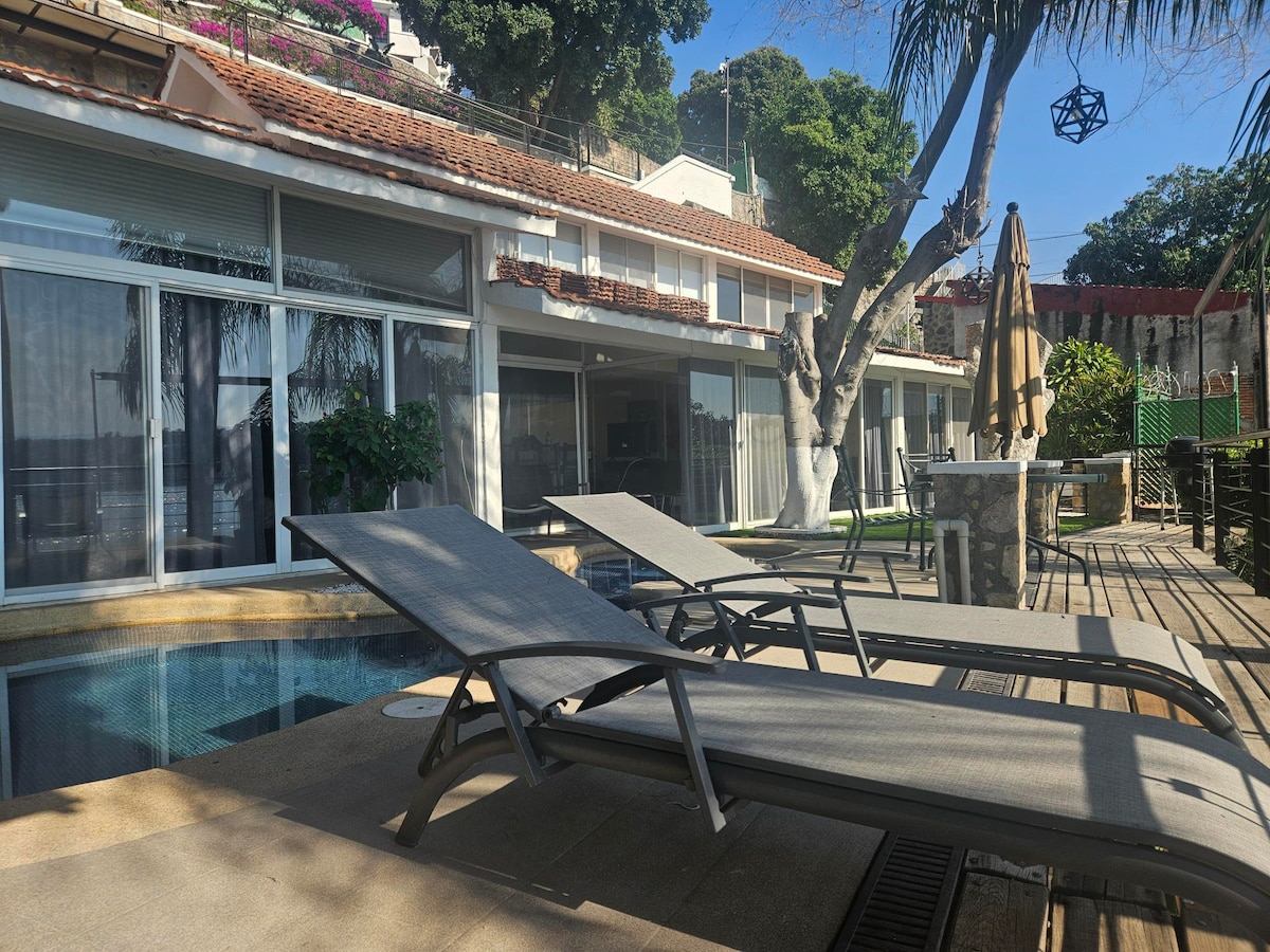 Crea recuerdos inolvidables en este alojamiento único y familiar.con maravillosas vistas desde las recamaras terrazas lapergola y desde la alberca todo es muy amplio la cocina el comedor estacionamiento para cuatro autos las recamaras muy amplias y con baños completos un lugar inolvidable