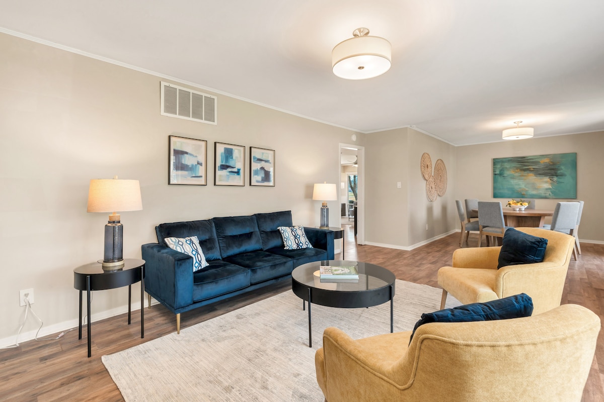 Zakoračite u This Must Be the Place — where style meets comfort in the heart of Jonesboro. Ovo 2BR/2BA utočište udaljeno je samo nekoliko minuta od ASU-a, centra grada i vrhunskih bolnica. Pijuckajte kafu na trijemu, strimujte svoje favorite ili se opustite u krevetima koji su toliko udobni da ćete zaboraviti da niste kod kuće. Sa odvažnim dizajnom, toplim detaljima i savršenom lokacijom, ovo nije samo smještaj — to je onaj koji ćete pamtiti.