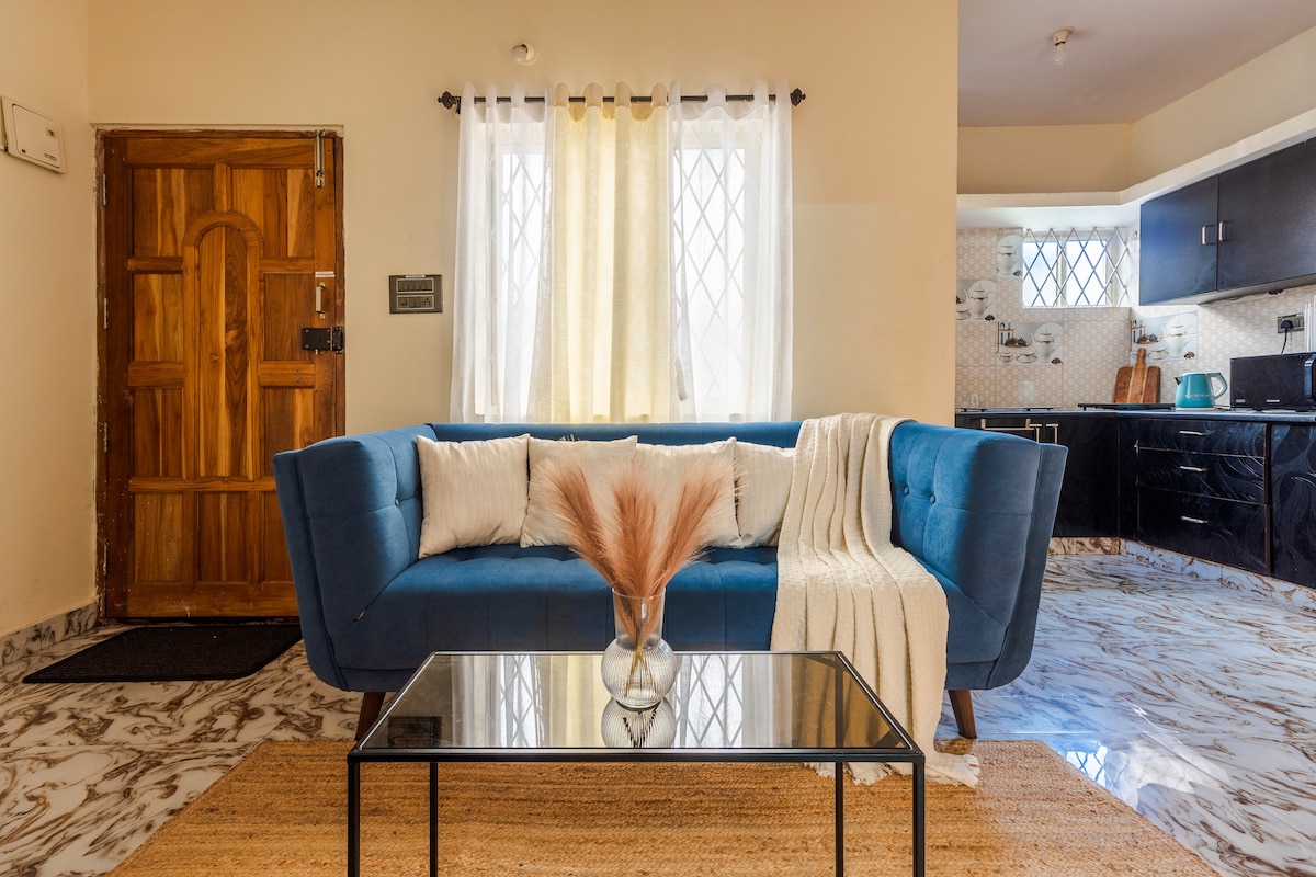 Dobro došli u naš stan u Lejkvjuu! Doživite modernu udobnost u mirnom okruženju Bangalora. Opustite se u našem udobnom 2 BHK stanu sa klima-uređajem (u jednoj spavaćoj sobi). Uživajte u besprekornom strimovanju uz Wi-Fi od 100 MB/s. Uživajte u pogodnostima besplatnog parkinga koji je dostupan u sklopu objekta, što vam olakšava putovanje na posao. Uživajte u besplatnom čaju i kafi i odmorite se na vrhunskim dušecima s kvalitetnom posteljinom. Šampon i gel za tijelo su obezbijeđeni za bezbrižan boravak. Uživajte u udobnosti i praktičnosti u najboljem izdanju!