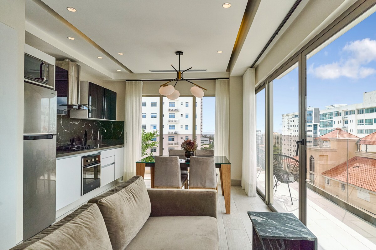 Uživajte u elegantnom iskustvu u ovom smeštaju koji se nalazi u centru grada. Savršen stan za bijeg u grad, dolazak na odmor ili u potrazi za prostorom za miran rad. Opremljen je klima-uređajem, vrhunskim uređajima i modernim ukrasima koji će učiniti da se osećate prijatno u svakom ćošku. Imamo spoljni prostor na krovu, bazen i teretanu opremljenu svime što vam je potrebno za vežbanje.