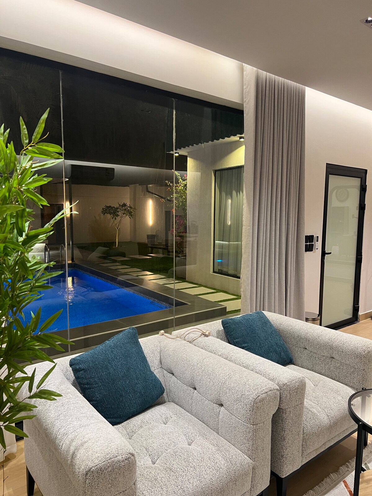 Elegantan hotelski apartman u prizemlju. Apartman ima moderan dizajn i moderan nameštaj. Apartman se nalazi u gradu Hofuf u južnom delu naselja Al-Sulajmanija, na strateškoj lokaciji u blizini svih usluga. Apartman se sastoji od: dnevnog boravka, hotelske spavaće sobe sa glavnim krevetom, privatnog ulaza za automobil, pametnog sistema za ulazak, kutka za kafu, čajnika, mikrotalasne pećnice, frižidera i spoljnog prostora za sedenje