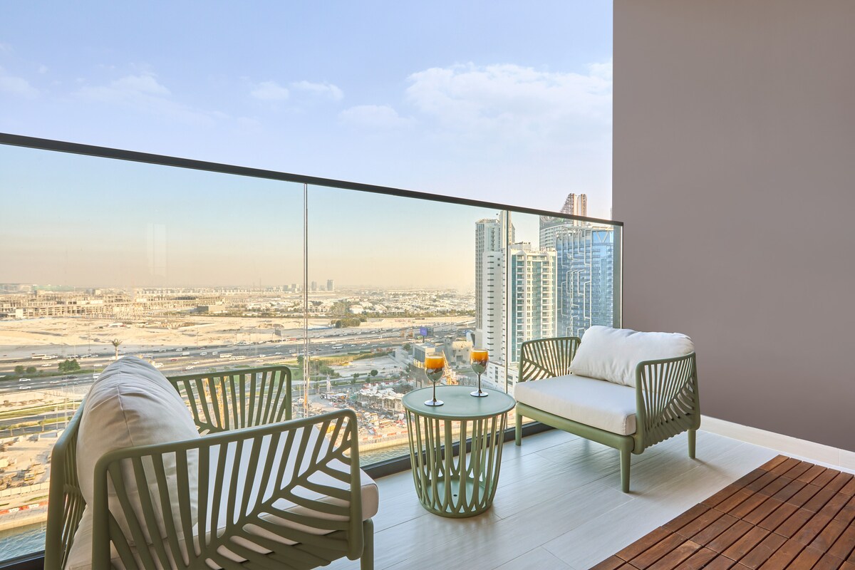 Elegantan 1BR sa pogledom na horizont Dubaija i Burdž Kalifu