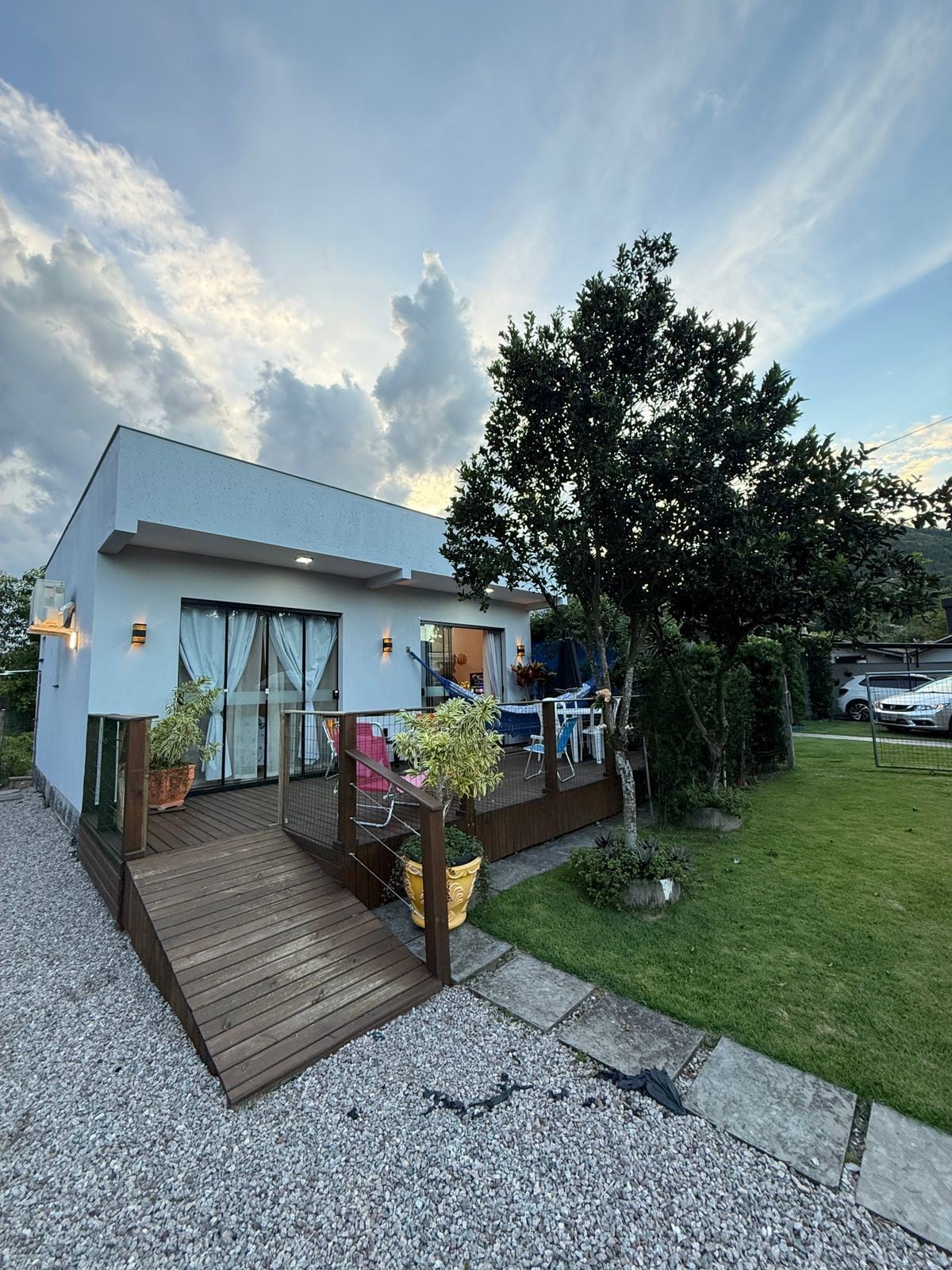 Chalé aconchegante na Praia do Forte próximo a Trilha Ecológica. Sua localização fica a 300m da Praia do Forte, 600m do Parador 12 e 400m da Fortaleza São José da Ponta Grossa. A vista oeste do Chalé é para baia continental e leste é para praia de Jurerê Internacional. É uma ótima opção para quem quer relaxar e manter o contato com a natureza.