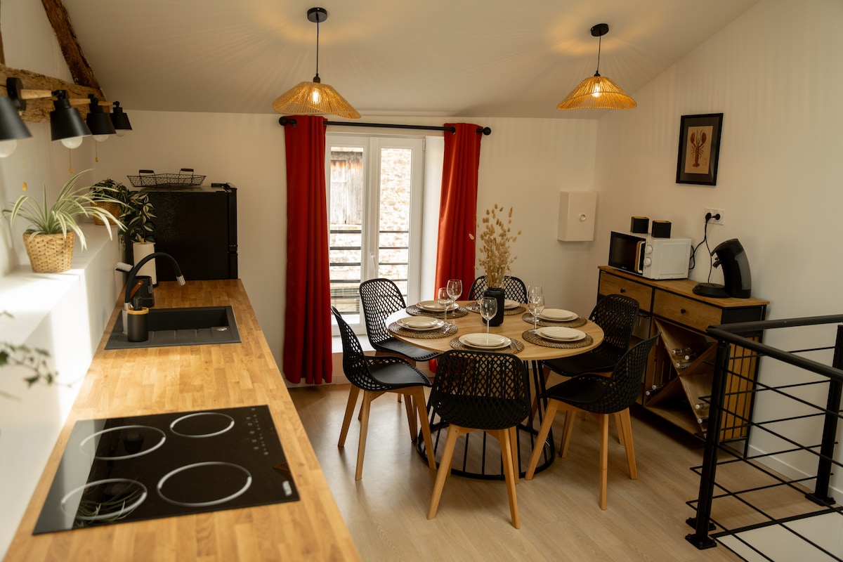 Potpuno renoviran smeštaj, ova gospodarska zgrada u našoj kući na farmi zadržava karakter starog sa izloženim gredama u prijatnoj i toploj atmosferi. U srcu sela sa svim sadržajima: pekara, mesnica, šargarepa, supermarket, apoteka ... Smeštaj nudi prelepe količine, sa opremljenom kuhinjom, 2 spavaće sobe, kupatilo sa tušem i vešerom sa mašinom za pranje veša. Predivan spoljni prostor opremljen se i deli se sa našim domaćinima. Sadržaji za bebe.
