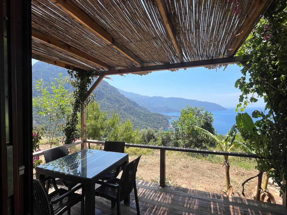 150 metara od obale zaliva Kabak, ručno izrađeno, 25 m2 enterijera, visoko od zemlje, toalet za tuširanje, privatni balkon, klimatizovano, borova i maslina, 2 minuta hoda do restorana i pijaca, 4 drvene bungalove sa odvojenim ulazima u prirodu.
