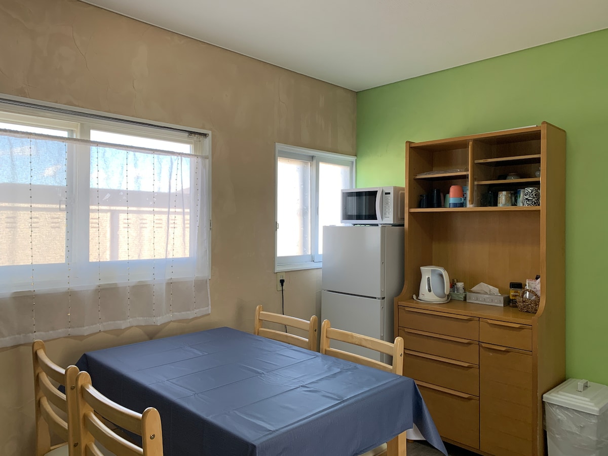 Možete da se opustite i iznajmite udoban smeštaj za druženje sa prijateljima i porodicom sa modernim i mirnim enterijerom.Popularni smeštaji za porodice, parove, studente i okupljanja rođaka!To je prostor u kojem gosti iz inostranstva mogu da dožive japanski smeštaj. Nalazi se na 3 minuta hoda od stanice, u blizini prodavnica, perionica veša, karaoke kutija, jakiniku prodavnica i Bibai specijaliteta i restorana, tako da nećete imati problema sa ishranom ujutru i uveče!Savršena baza za razgledanje, čak i za duži boravak!Osim pristupa snežnim površinama, termalnim izvorima i skijaškim stazama u Bibaju, ima i odličan pristup Saporu i Asahikavi preko JR-a!Pored prodavnice preko puta nalazi se parking za najviše 2 automobila, sa odličnim pristupom automobilom za Čitose i Furanu!U blizini ovog smještaja koji se nalazi u centru grada, pronaći ćete sve što vaša porodica želi da posjeti.