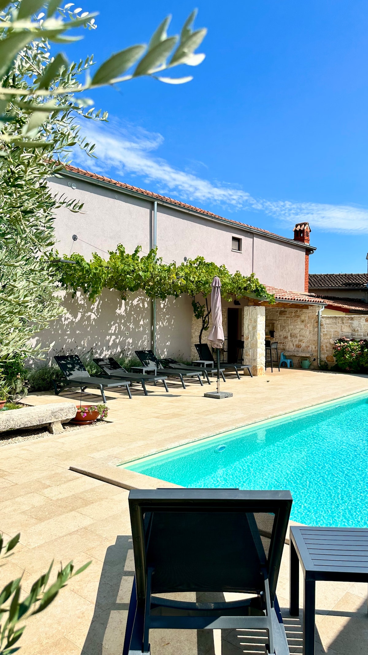 Autentična istarska kamena kuća sagrađena 1922. godine. Ova kuća je u potpunosti renovirana i opremljena da vam pruži sve što vam je potrebno. Moderan enterijer, potpuno opremljena kuhinja, opuštajuća dnevna soba, prostrane spavaće sobe sa privatnim kupatilom, spoljna trpezarija sa roštiljem, privatni bazen i parking u sklopu objekta. Svaka soba je pažljivo dizajnirana od strane našeg dizajnera. Sve ovo će vam omogućiti da uživate u praznicima i napunite baterije.