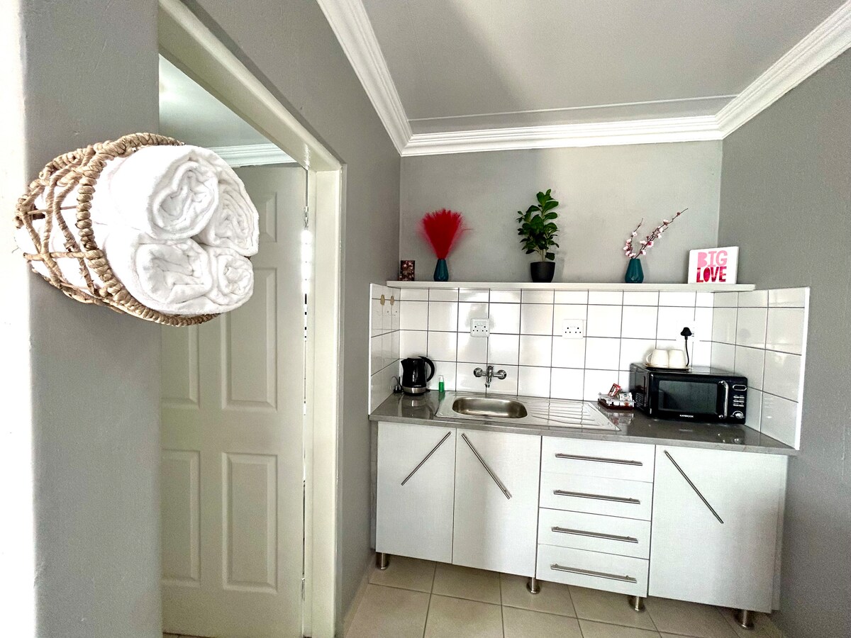 Privatni luksuzni stan povezan sa našim domom. Opremljena je bračnim krevetom, čajnom kuhinjom i klima-uređajem. Čajna kuhinja ima kompletno posuđe, pribor za jelo, čajnik, toster, indukcioni šporet, mikrotalasnu pećnicu, fritezu i skriveni frižider. Kupatilo ima ogromnu tuš kabinu u obliku spa centra i WC šolju. Besplatan Wi-Fi i besplatan pristup Netflix-u, Prime Video-u i Showmax-u. Gosti mogu da se prijave na svoj DSTV nalog.