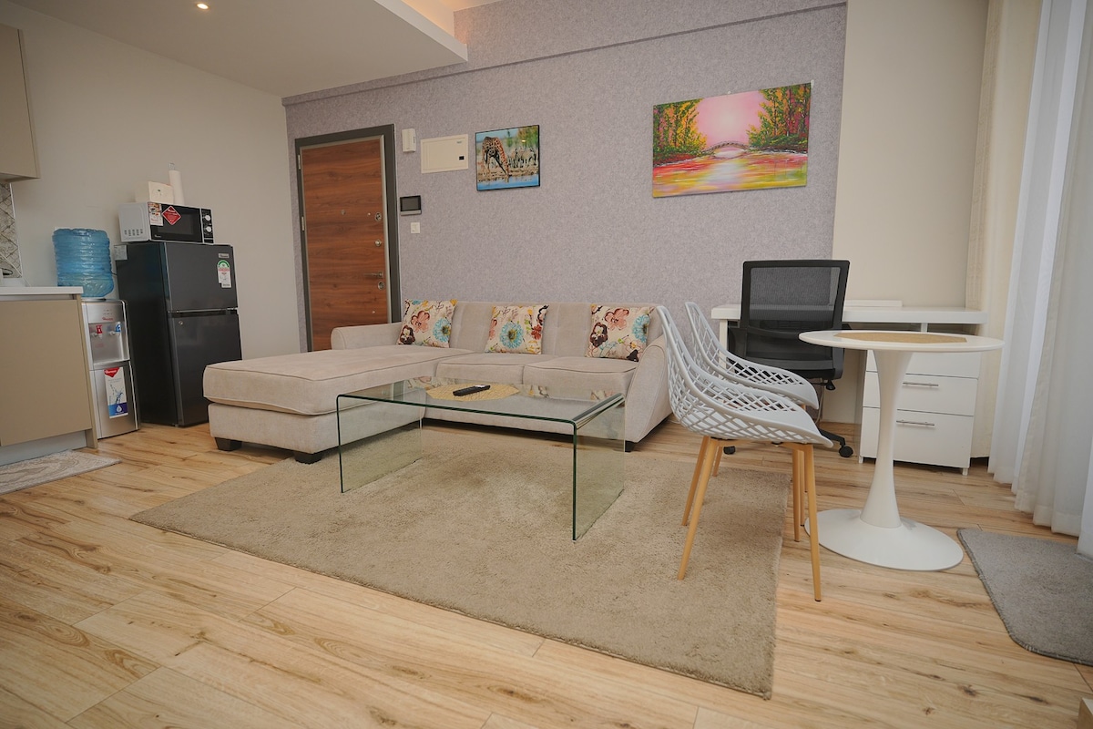Ovo jedinstveno mesto od 9 minuta do aerodroma ima svoj stil. Mirno okruženje. Vrlo čist. dobro namješten i moderno opremanje koje je privlačno, udobno i može da primi i porodicu i pojedinca. Blizina aerodroma. SGR i tržni centri. Domaćin ima WI-FI, Netflix i uslugu čišćenja, stoga je savršen za ugošćavanje za zaposlene osobe Opustite se sa celom porodicom u ovom mirnom smeštaju. udoban ortopedski dušek/čistu i posteljinu. Stambena zgrada ima danonoćno obezbeđenje.