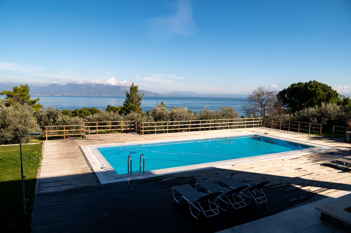 Seafront villa with private beach 1 hr from Athens
