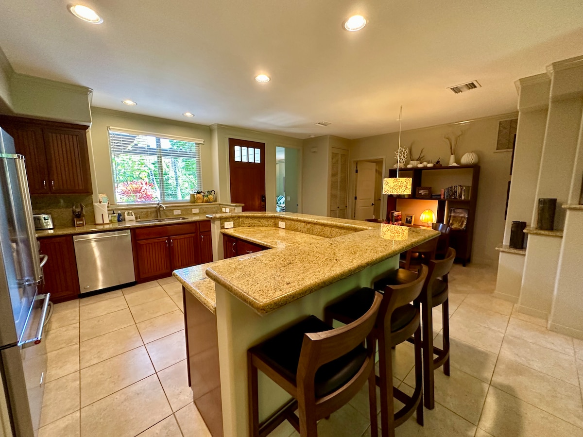 Naša prostrana vila sa 3 spavaće sobe i 2 i po kupatila savršeno je mesto koje možete nazvati domom dok uživate u Velikom ostrvu Havaja. Smešteni u području odmarališta Vaikoloa na sunčanoj obali Kohale, naći ćete se savršeno smešteni u svim pogodnostima dok ste u mirnom i privatnom okruženju. Ova predivno uređena vila nudi svu udobnost i sadržaje života u odmaralištu. Nekoliko minuta vožnje ili na prijatnoj šetnji, a tu su i kafići, prodavnice i restorani. Dobro došli u raj!