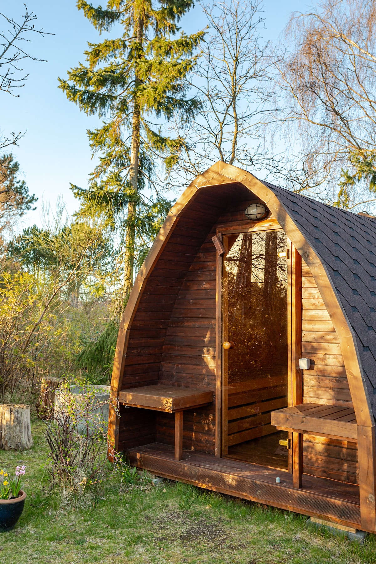 udobna, novija drvena kućica sa kuhinjom sa frižiderom, mikrotalasnom pećnicom i pločom za kuvanje, električnom mini pećnicom. Podno grejanje u vikendici. Toalet, tuš sa bojlerom od 30l, (kratko tuširanje) Bračni krevet, kauč, trpezarijski sto, mala terasa. TV i Wi-Fi. Koliba se nalazi u dvorištu u blizini naše kuće. Živimo izvan sela Hjortshøj na ivici šume i blizu autoputa. Psi su dobrodošli. Iznajmljuje se sa posteljinom i peškirima. Udaljenost od Arhus 12 km, do javnog prevoza 600m. Koliba nije pogodna za duži boravak.