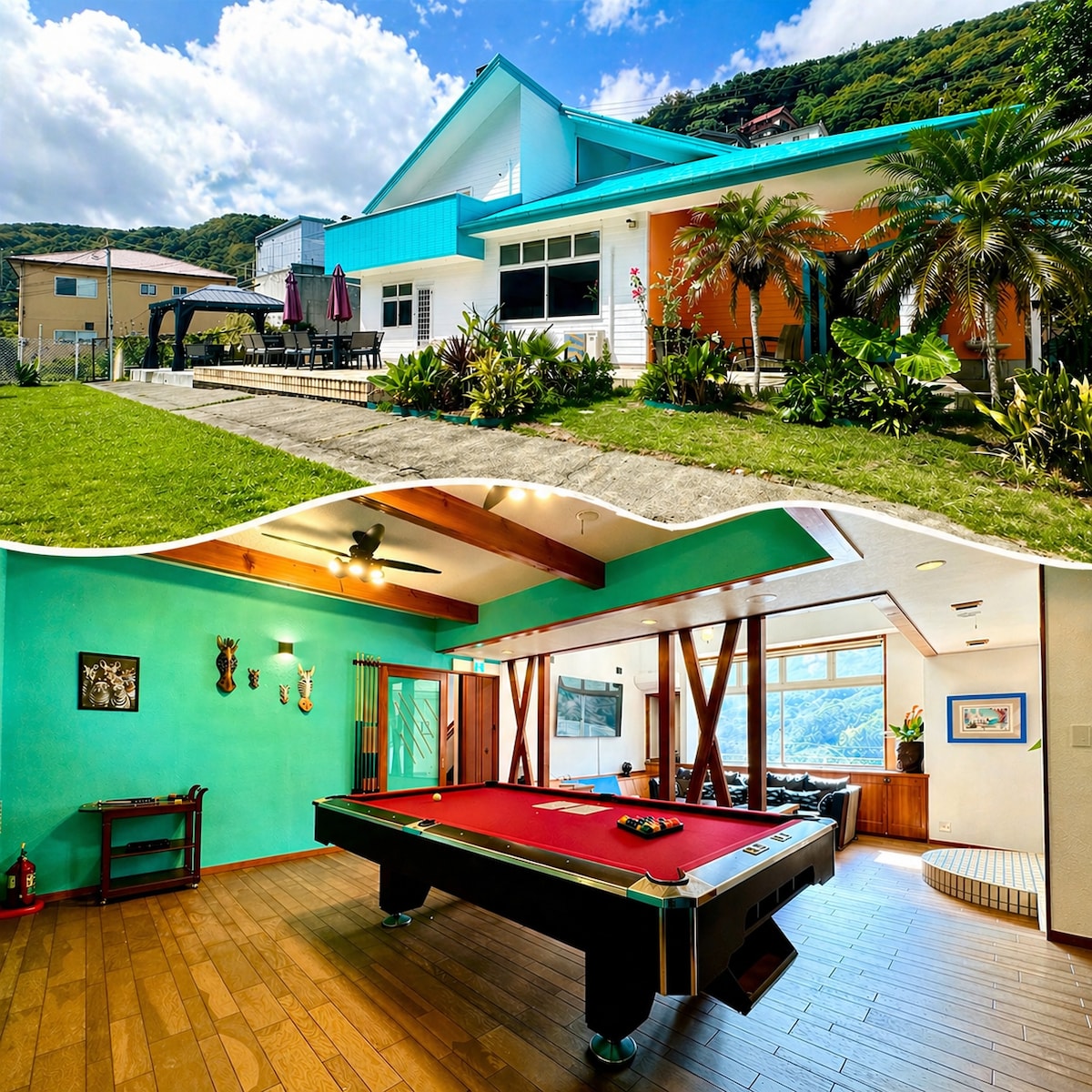 サンセットヴィラ白浜|ビーチ徒歩5分|一棟貸切|ファミリー・大人数向け|BBQ・ビリヤード・ペット可