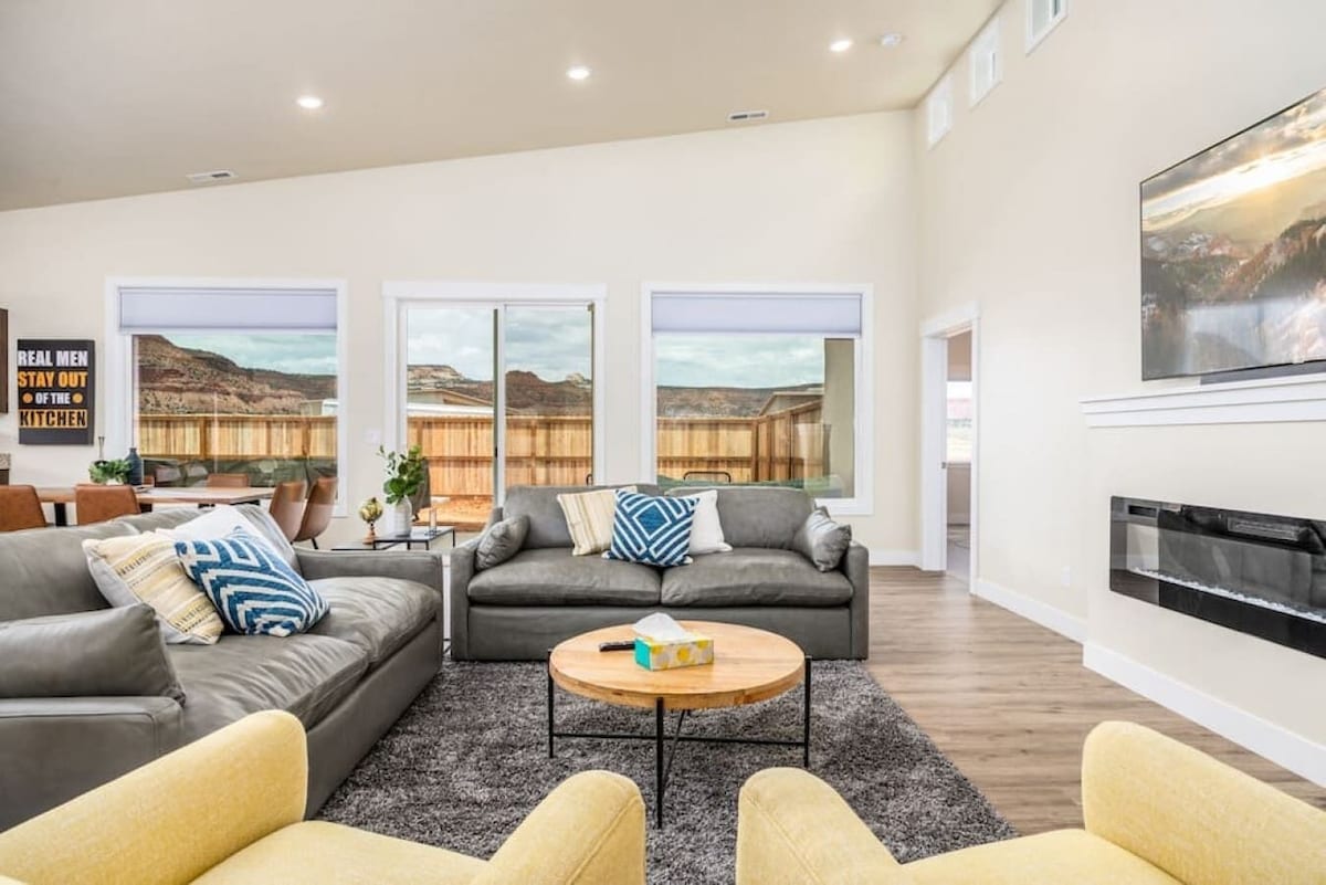 Unwind in a stargazer’s rooftop oasis—ideal for families or couples seeking space, serenity, and unforgettable views. This pet-friendly luxury home in Kanab’s La Estancia offers 3BR/3BA, a fenced yard with BBQ & fire pit, plus access to pools, hot tubs, gym, and clubhouse. Perfect for remote work or relaxing under the stars, with Zion and Bryce nearby for epic red-rock adventures.