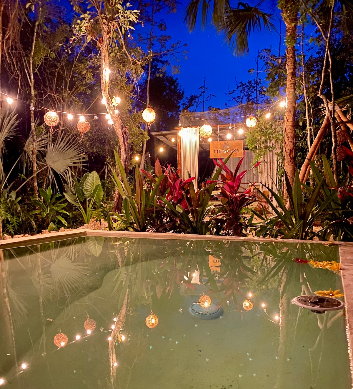 Disfruta del encantador entorno de este romántico lugar en la naturaleza. Reconectate con la magia de la jungla maya, hospédate en una bungalow único y exclusivo sobre la copa de los arboles conectando con la naturaleza. Disfruta de los sonidos de la jungla sobre un cielo estrellado, vive nuestra experiencia de spa maya, con rituales y tratamientos ancestrales como temazcal, masajes de pareja, corporales mayas, ceremonias y limpias espirituales .