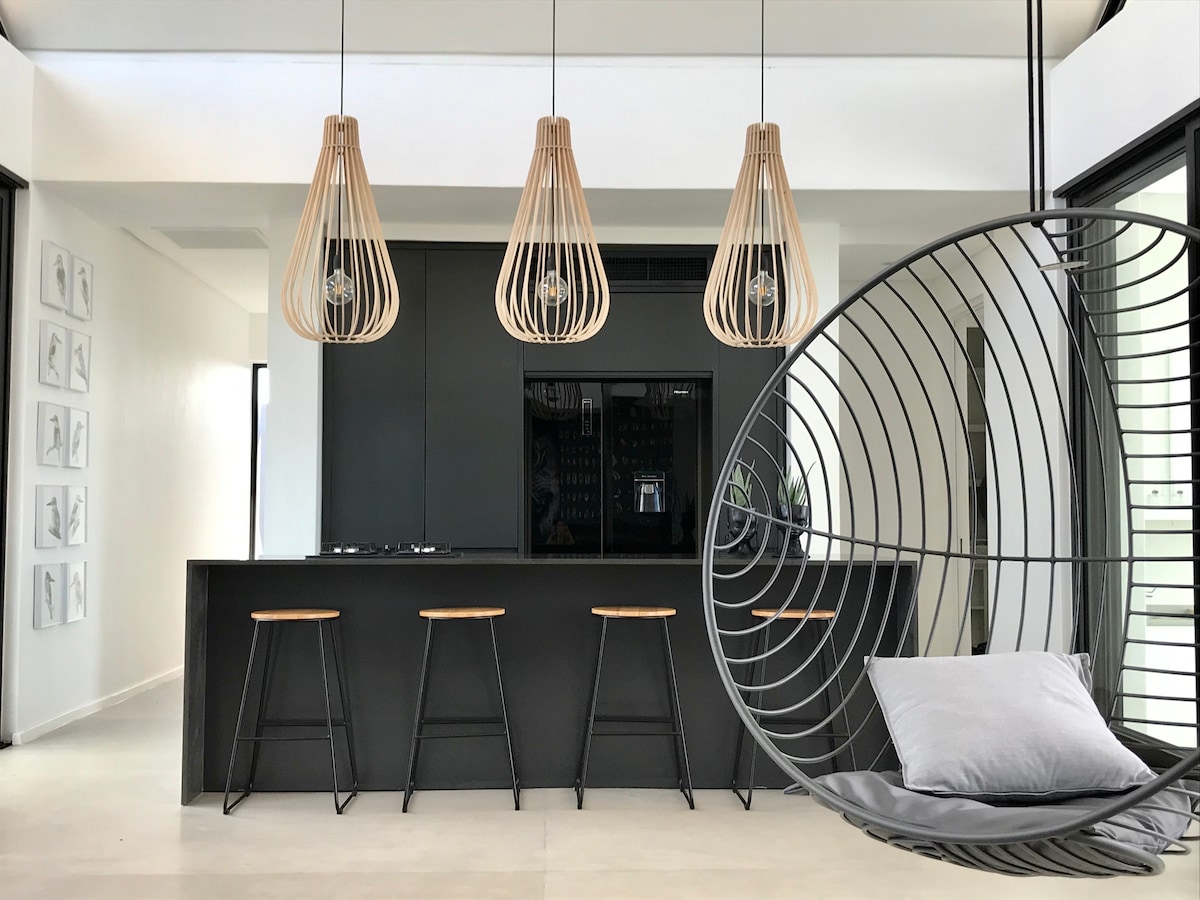 Elegance and convenience! A beautiful, new 55 sqm loft suite located in a quiet cul-de-sac on an 18 hole golf estate. Enjoy peace of mind with top notch security and solar power so you never have to worry about power outages. Private entrance. Relax in a luxurious queen-size bed, the finest Egyptian cotton linens and plush goose down duvet and pillows. Kettle, microwave and fridge, enjoy quality filter coffees, teas and rusks. Flatscreen TV with full DSTV package and fibre wifi.