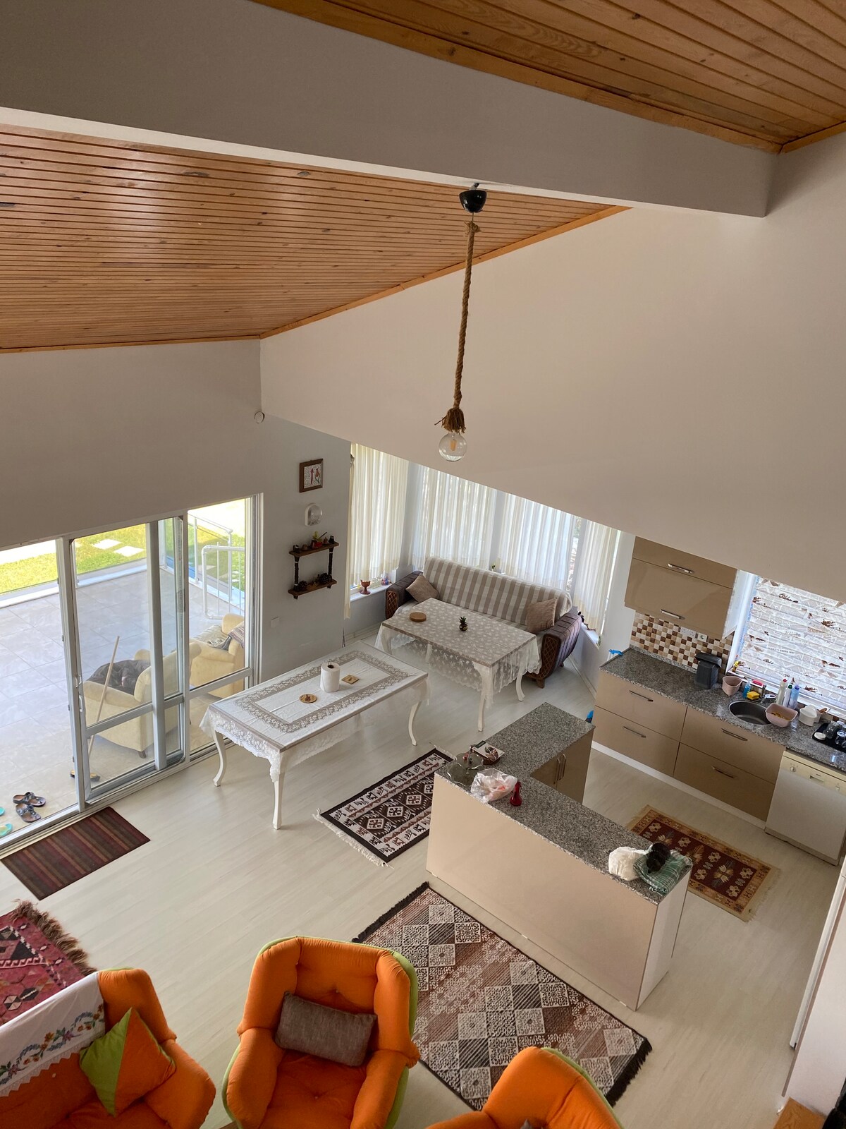 Samostalna vila sa pogledom na more, 2,5 sprata, 4 sobe, 4 bračna kreveta, 1 krevet za jednu osobu i bašta od 200 m2 je u potpunosti namenjena našim gostima. U zimskim mesecima postoji peć na drva, radijator i klima-uređaj. Lokacija ima svoju plažu, a najbolji zalivi u regionu (Manal, Ajbaligi, plaža Korsan, plaža Ardič, Bejaz Kajalar) udaljeni su 5–10 minuta vožnje automobilom.