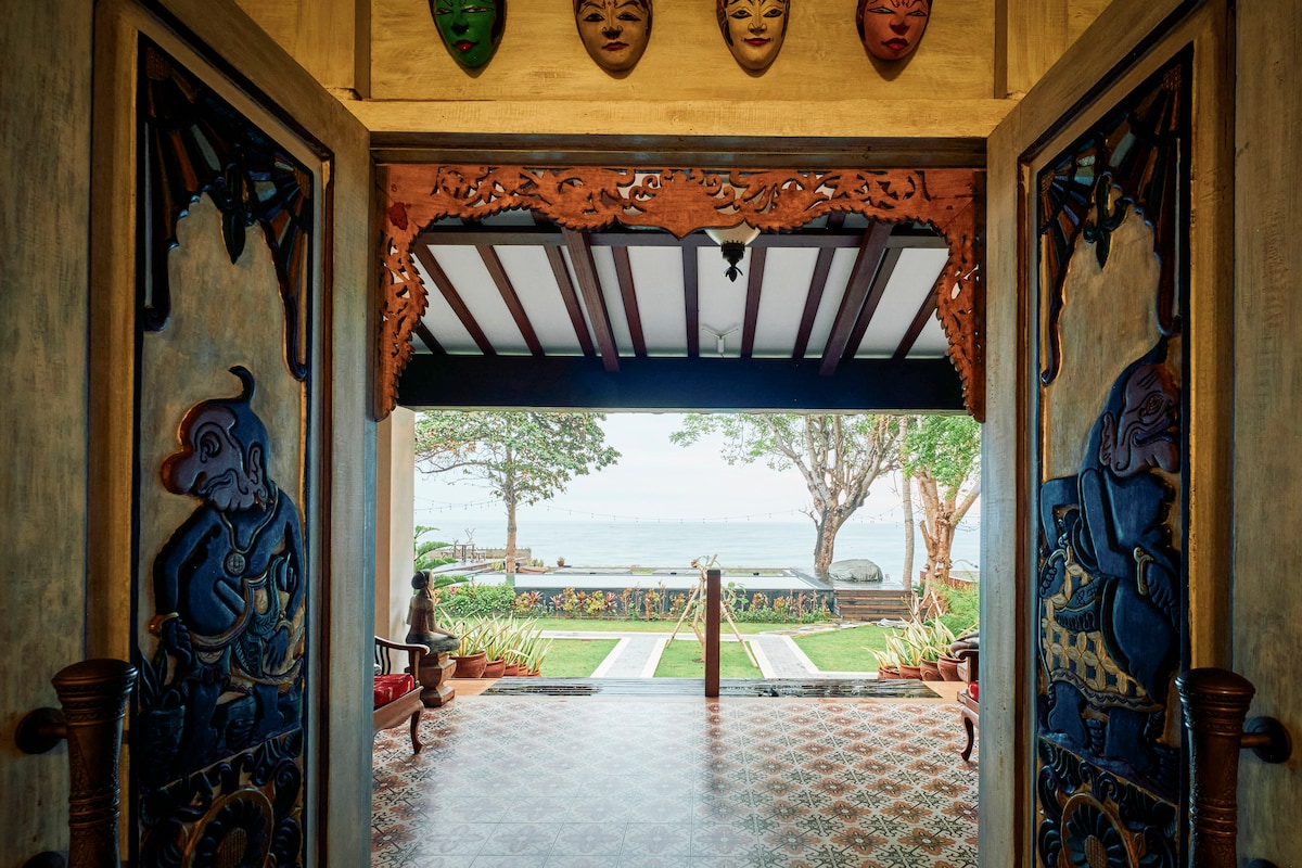 Unique Stay in the North With a total of 2 buildings, 1 shared pool and restaurant area this boutique stay has 7 luxury designed bedrooms . Four of them are 70 sqm Suite rooms and composed the main Joglo and has a shared living room. Two rooms are looking the sea, sunrise and sunset view and 2 other rooms looking to Mont Agung. In the second building you will find a restaurant in the first floor and 3 50 sqm deluxe room with sea view on the second floor, a private bathroom and terrace.