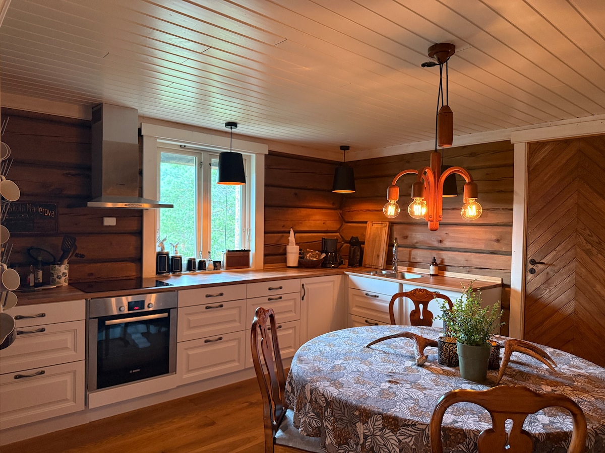 Dobrodošli u udobnu i stariju kuću u Sapmiju, sa drvenim zidovima unutra, centralno smeštenu u Karasjoku. Kuća je jednostavna, ali šarmantna i dobijate mnogo za svoj novac. Ovde dobijate 4 spavaće sobe, saunu, đakuzi, kamin sa besplatnim drvetom, kompletnu kuhinju i TV od 65 inča sa Netfliksom i Prime-om. Wi-Fi, posteljina, kafa i čaj su uključeni. Savršena lokacija da doživite polarnu svetlost odmah ispred vrata, a na maloj udaljenosti se nalaze prodavnica namirnica, park Sápmi, muzej, Sametinget i centar grada.