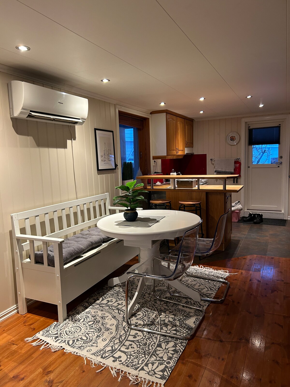 Moderan stan sa dobrim sadržajima. Savršeno za parove na kratkom putovanju ili radnike koji su privremeno u Haugesundu. * 300/300 mbit internet * Pametni TV od 65inča sa Chromecast-om * Potpuni pristup kuhinji sa posuđem * Aparat za kuvanje pirinča, aparat za kafu, mikrotalasna rerna i rerna * Dostupna su dva parking mjesta Zajedničke prostorije uključuju * Pristup maloj teretani sa osnovnom opremom * * Terasa na krovu. Obično se koristi kao dom, ali se iznajmljuje povremeno i na kraće periode.