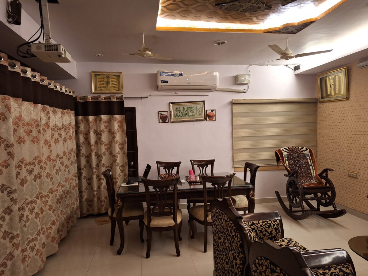 A studio carefully designed by me, offering pure elegance & functionality, making you feel home & comfy. 24 hour male/female guard Short walk: Restaurants Bus stops You're just: 15 minutes - HYD City Centre 19 minutes - Airport (RGIA) 26 minutes - Hitech City / Financial Dist. / US Emb Your stay includes: Parking Snacks Cold/hot beverages Towels Private bathroom Water geyser No-bugs Housekeeping Refrigerator Electric kettle Air conditioner 24h electricity backup