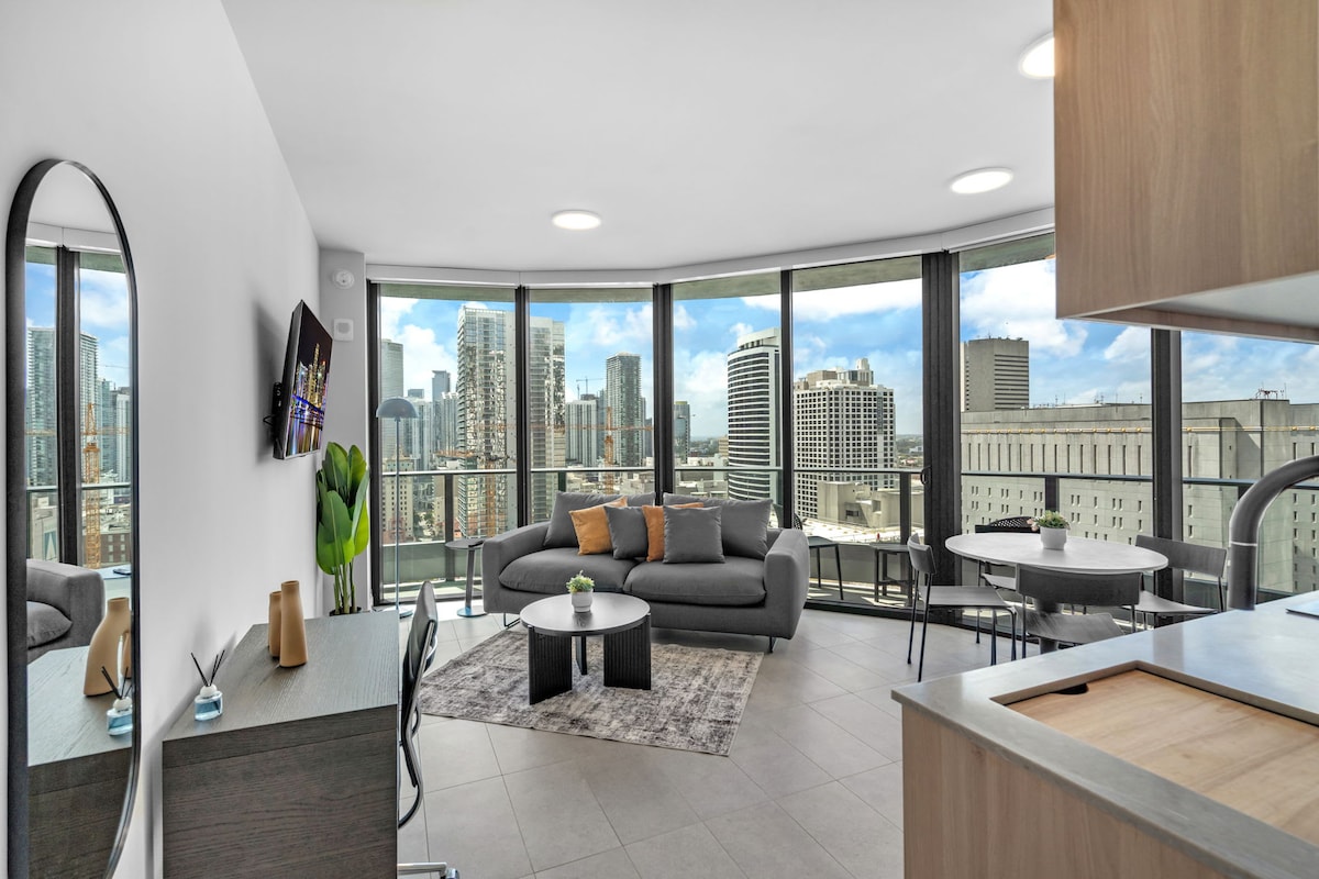 🦩 Elegantan 1BR na 30. spratu potpuno novog tornja u centru Majamija sa prelijepim pogledom na grad. 📍Najbolja lokacija: Vrlo blizu Kaseya Centra, Cruise Port Miami, Bayside, restorana, noćnog života i kupovine. ✅ Uživajte u vrhunskim sadržajima, uključujući bazen sa salonom, bar pored bazena, kompletnu teretanu, restoran i bar u sklopu objekta, uslugu konsijerža 24/7, jednostavan samostalni ulazak putem aplikacije – sve bez naknada za odmaralište ili prijavu.