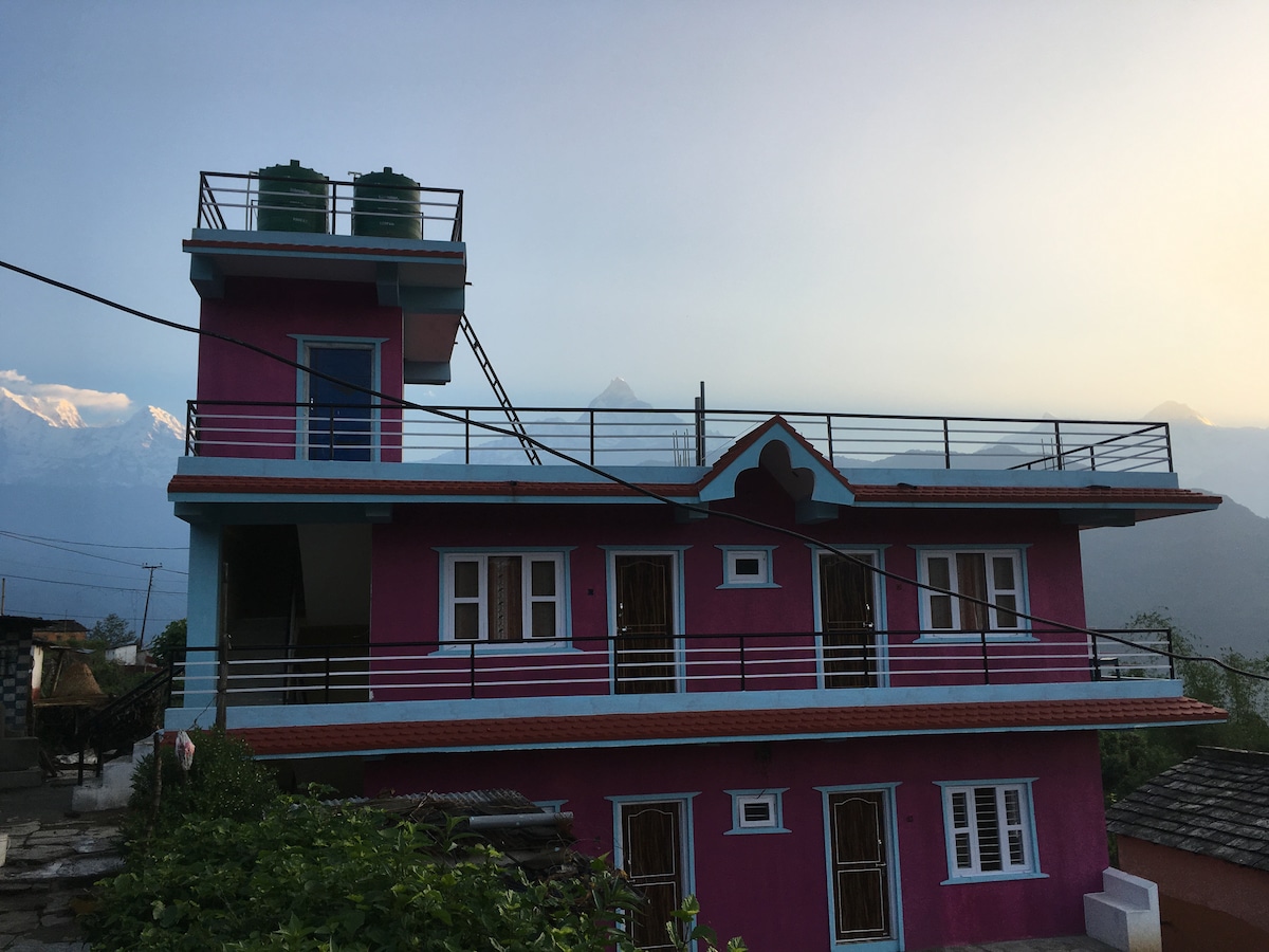 Opustite se i uživajte u veličanstvenom pogledu na naš centralni, porodični Airbnb u mirnom rezidencijalnom području. Otkrijte obližnje pijace, restorane i kulturne događaje, samo 6 minuta hoda do obale jezera Phewa i 12 minuta do hrama Tal Barahi. Naš gostoljubivi dom nudi toplo nepalsko gostoprimstvo i sve što vam je potrebno za punjenje u srcu Pokhare. Udaljeni smo 5 minuta od Autobuskog parka i 15 minuta vožnje od Međunarodnog aerodroma Pokhara.