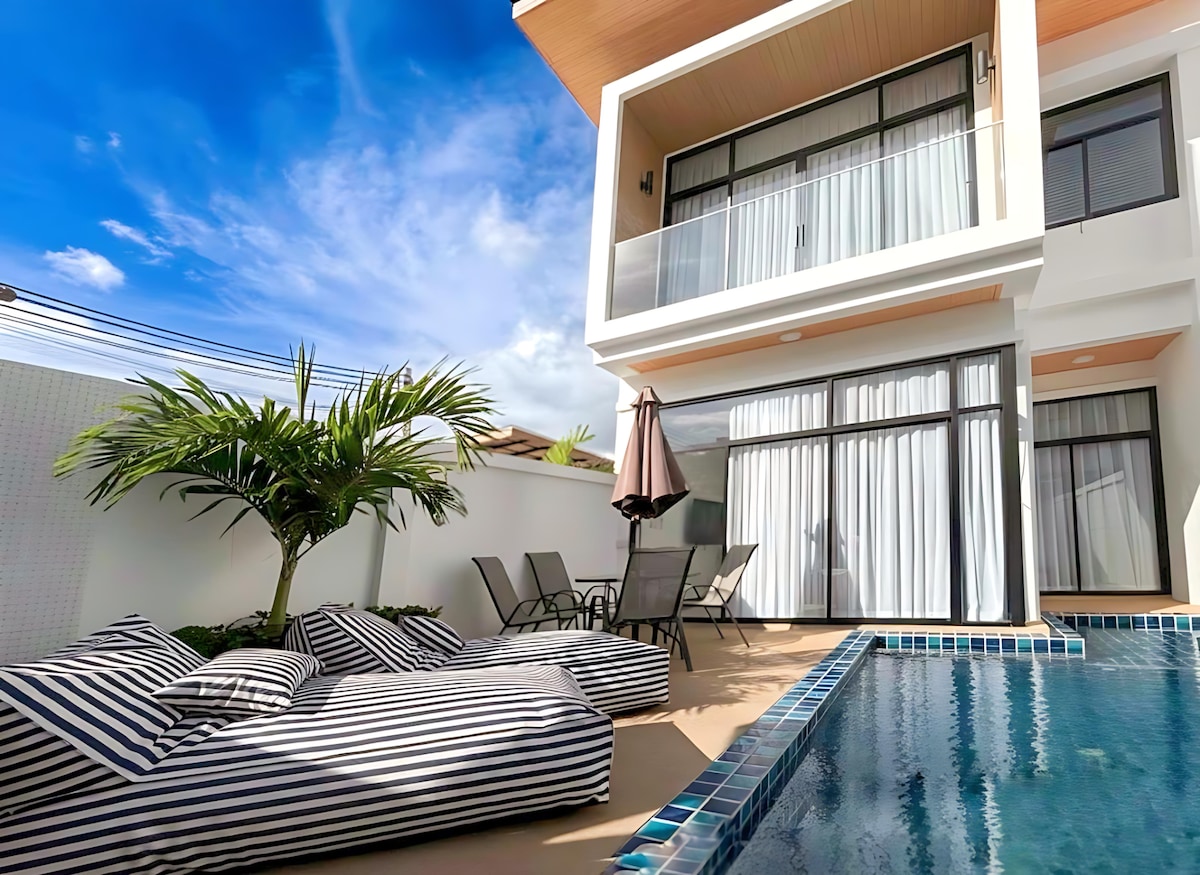 It is 800 meters away from Kamala Beach and a 12-15 minute walk. It is the largest group of villas near the beach. There is a 711 convenience store, Lotus Supermarket, a well-known high-end spa and affordable massage parlor at the door, as well as a pharmacy, clinic and fitness center. There are a variety of delicious restaurants and cafes on the beach, as well as the most perfect sunset beach, making it an excellent choice for vacation.