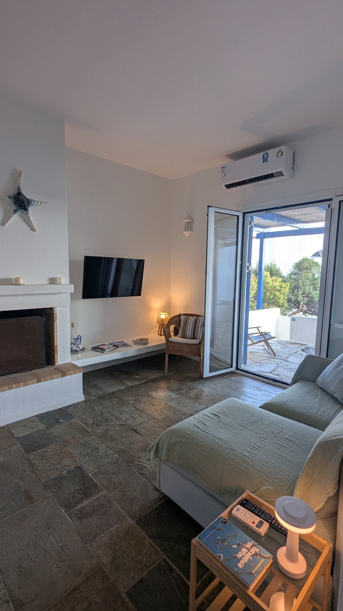Σε απόσταση μόλις 1 ώρας από την Αθήνα βρεθείτε σε έναν μικρό παράδεισο! Είτε θέλετε να κολυμπάτε όλη μέρα, είτε να δουλέψετε εξ’ αποστάσεως, μόνοι ή με παρέα, το φιλόξενο σπίτι μας θα σας προσφέρει όλες τις ανέσεις. Βρίσκεται στο όμορφο συγκρότημα Βίλλες Ποσειδώνος, στην Πούντα Ζέζα, δίπλα στο κύμα και σε απόσταση αναπνοής από την παραλία. Στο συγκρότημα υπάρχει ιδιωτική πρόσβαση στη θάλασσα, καθώς και πισίνα. Το μέρος είναι ιδανικό για παιδιά και για ήσυχες διακοπές μακριά από τα πλήθη.