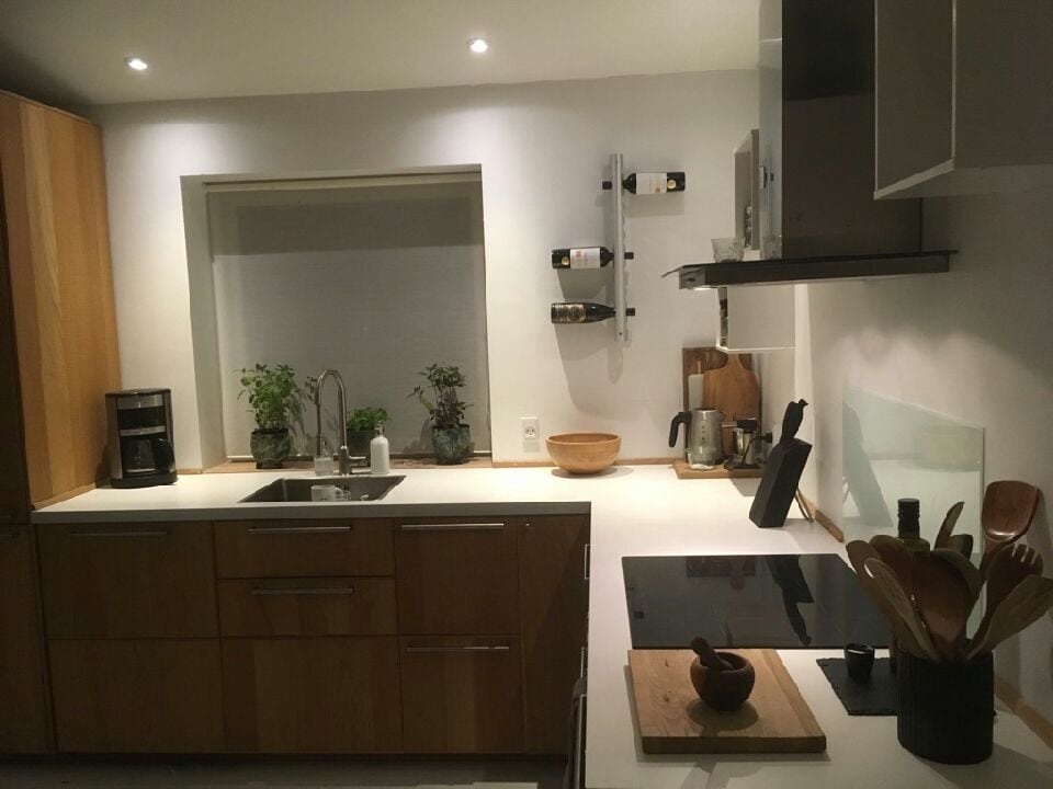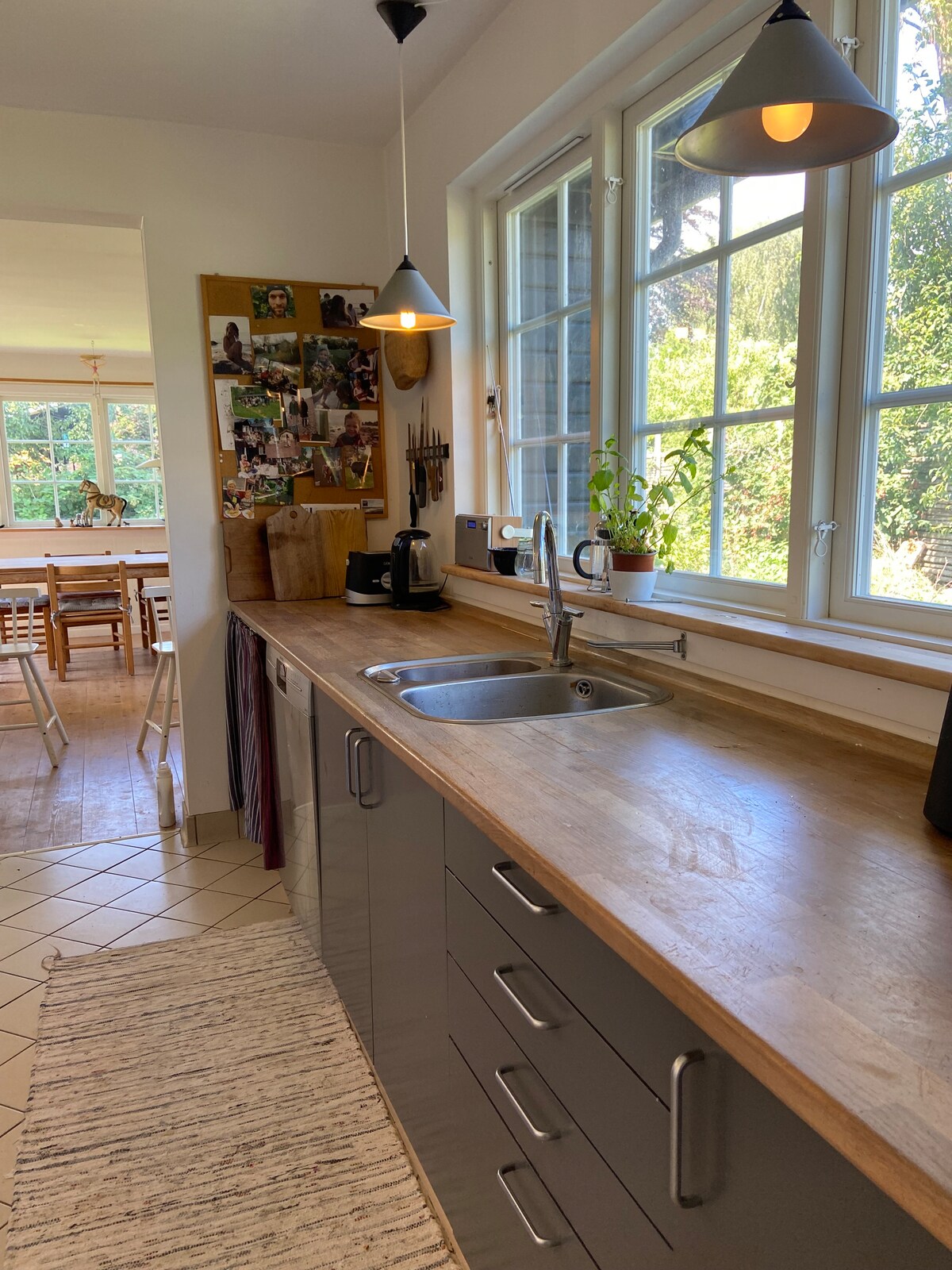 Large, architect-designed cottage with 3 bedrooms and four double beds, a cozy living room, an open kitchen with a dishwasher, a bathroom, and a huge garden. There are multiple terraces, fruit trees,, swings, a trampoline and a grill. The small annex in the garden can be used as a shelter. The sand beach is just a short 700-meter walk away, and it is 5 km to Gilleleje and Rågeleje. Bikes can be borrowed by arrangement. The kitchen is stocked with oil, spices, coffee, and tea for your use.