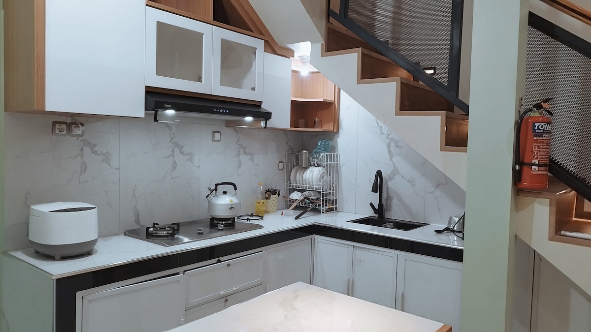 Cozy & Stylish Japandi Airbnb in Purwokerto, perfect for families! Our modern home features three spacious bedrooms and an inviting pool for relaxation. Located just 4 minutes from the train station and close to the city center, convenience is at your doorstep. The open floor plan combines comfort and contemporary design, offering a cozy living space for quality family time. With a fully equipped kitchen and ample natural light, our home is the ideal base for exploring the charm of Purwokerto.